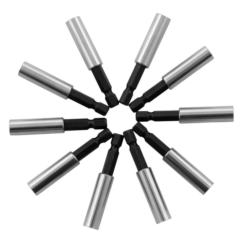 Магнитный адаптер Matrix арт. 11398 предназначен для установки бит с шестигранным хвостовиком на шуруповерты и дрели. Битодержатель необходим тем, кто часто сталкивается с необходимостью закручивать различные шурупы, строителям, механикам, сборщикам мебели и техники. Магнитное крепление обеспечивает надежную фиксацию биты, а также ее быструю замену.Адаптер прочен и долговечен, поскольку изготовлен из высококачественной углеродистой стали и имеет простую конструкцию, а хромирование защищает его от коррозии. Матерчатый подвес будет полезен на производствах и в мастерских, работники смогут брать себе битодержатели, а после смены возвращать их на место.В упаковке 10 штук.