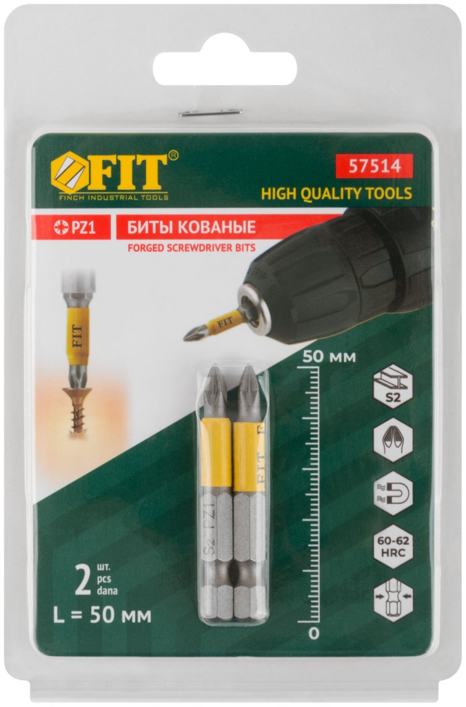 Биты кованые, сталь S2, одностор. 50 мм РZ1, 2шт. Профи, блистер