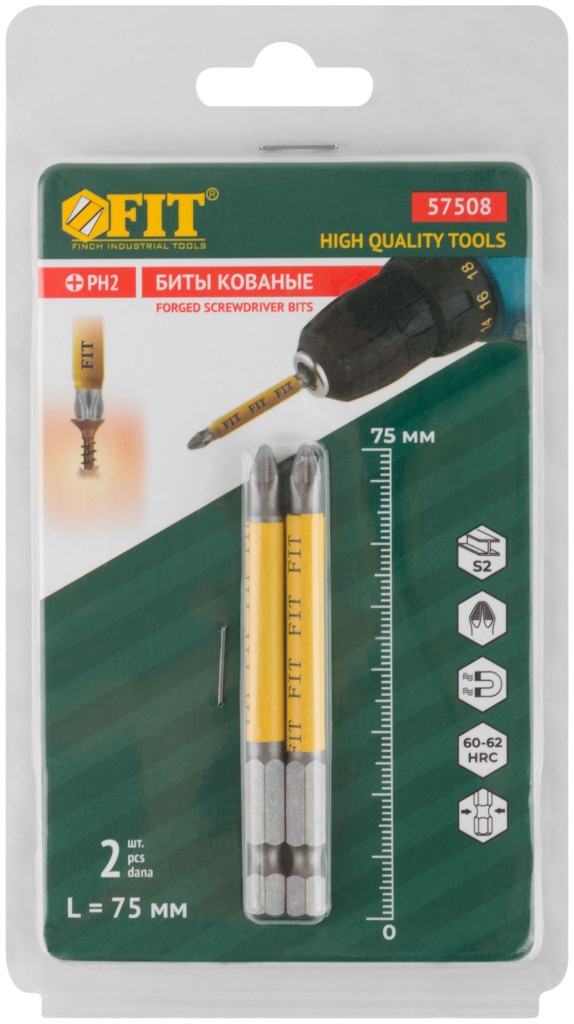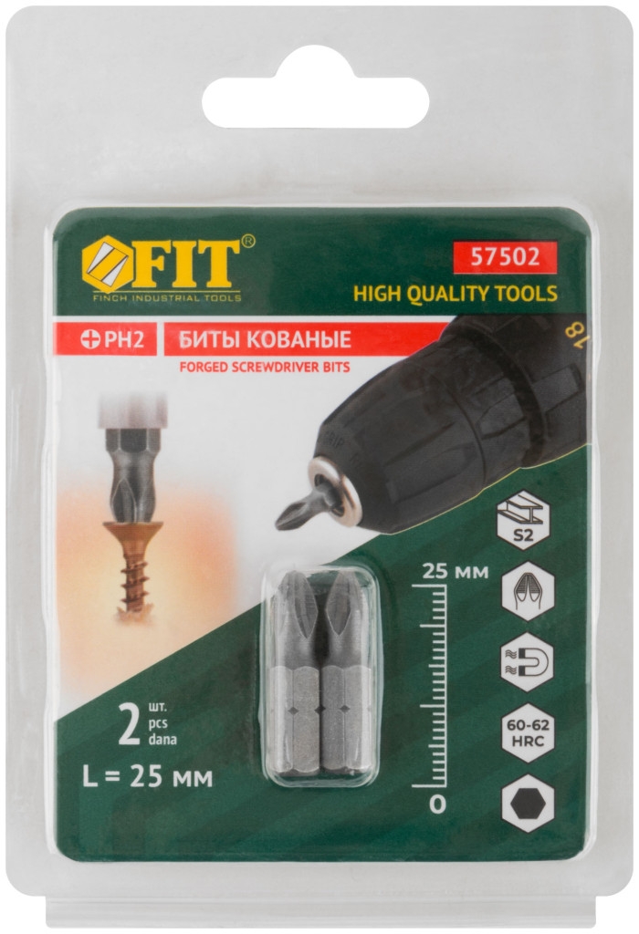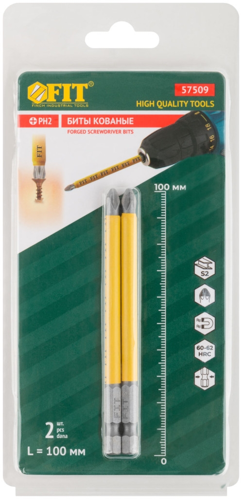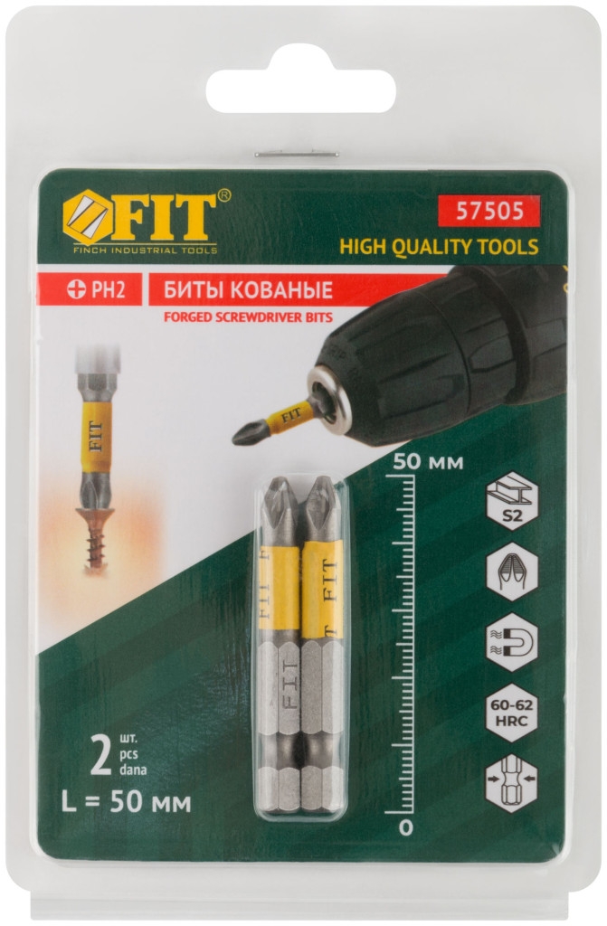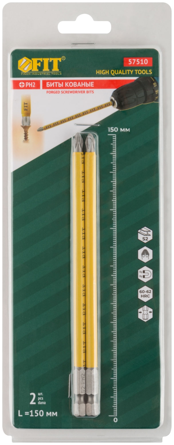 Биты кованые, сталь S2, одностор. РН2, 2шт. Профи, блистер