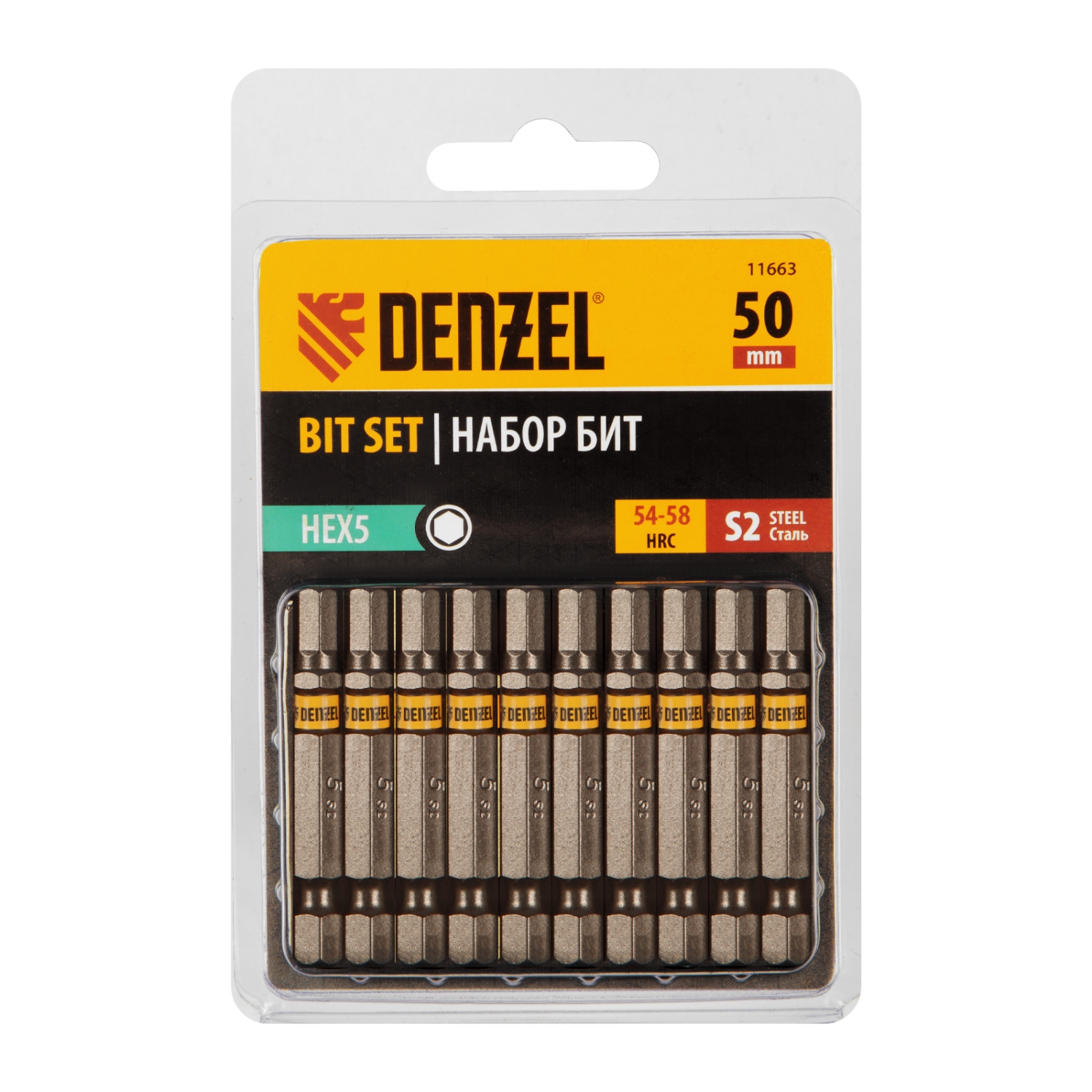 Биты шестигранный профиль сталь S2 HEX5х50 Denzel