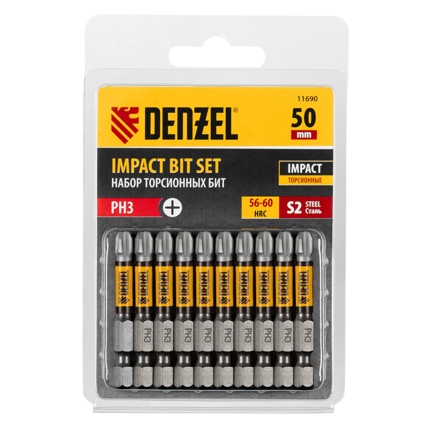 Износостойкость — биты закалены до твердости 62 HRC, что повышает сопротивляемость к деформации при высоких нагрузках.