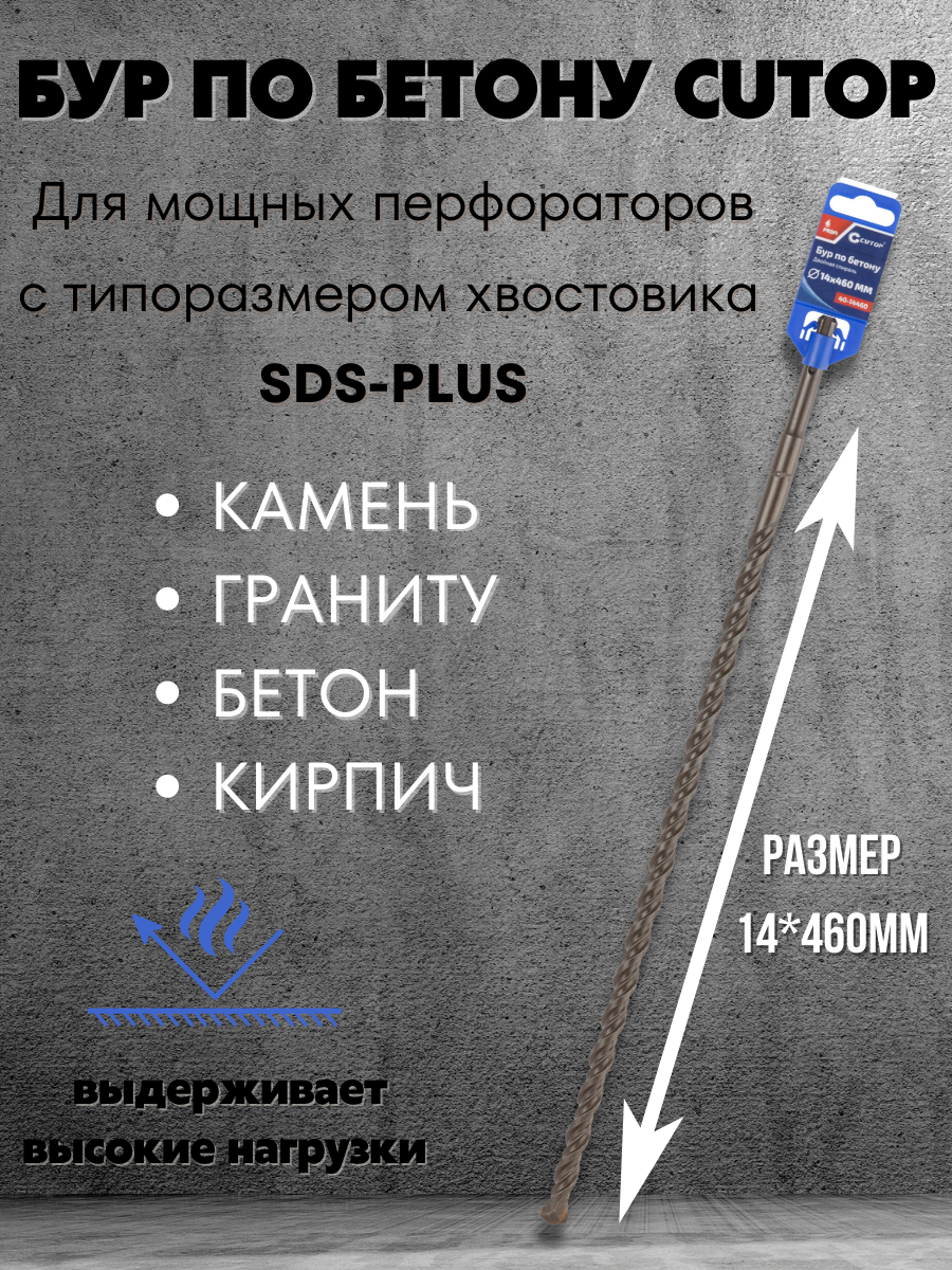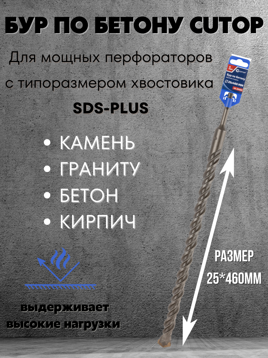 Подходит для бурения бетона, камня, гранита и кирпича.