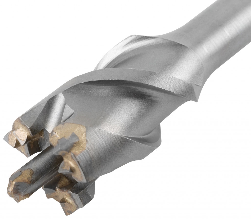 Профи. SDS-MAX хвостовик. Износостойкие. Для сверления глубоких отверстий большого диаметра в бетоне, в том числе армированном, кирпиче, камне. Для профессионального использования. Тройная спираль. Высота рабочей части 100 мм. Материал: термообработанная легированная инструментальная сталь 40 Cr, твердосплавные резцы из карбида вольфрама ВК8С. Упаковка: пластиковый подвес.