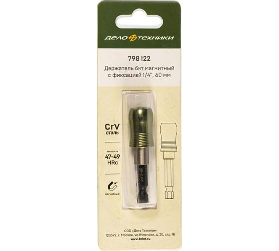 Для надёжной фиксации бит держатель оснащён магнитом и механическим фиксатором. Фиксатор освобождает биту движением "на себя".
