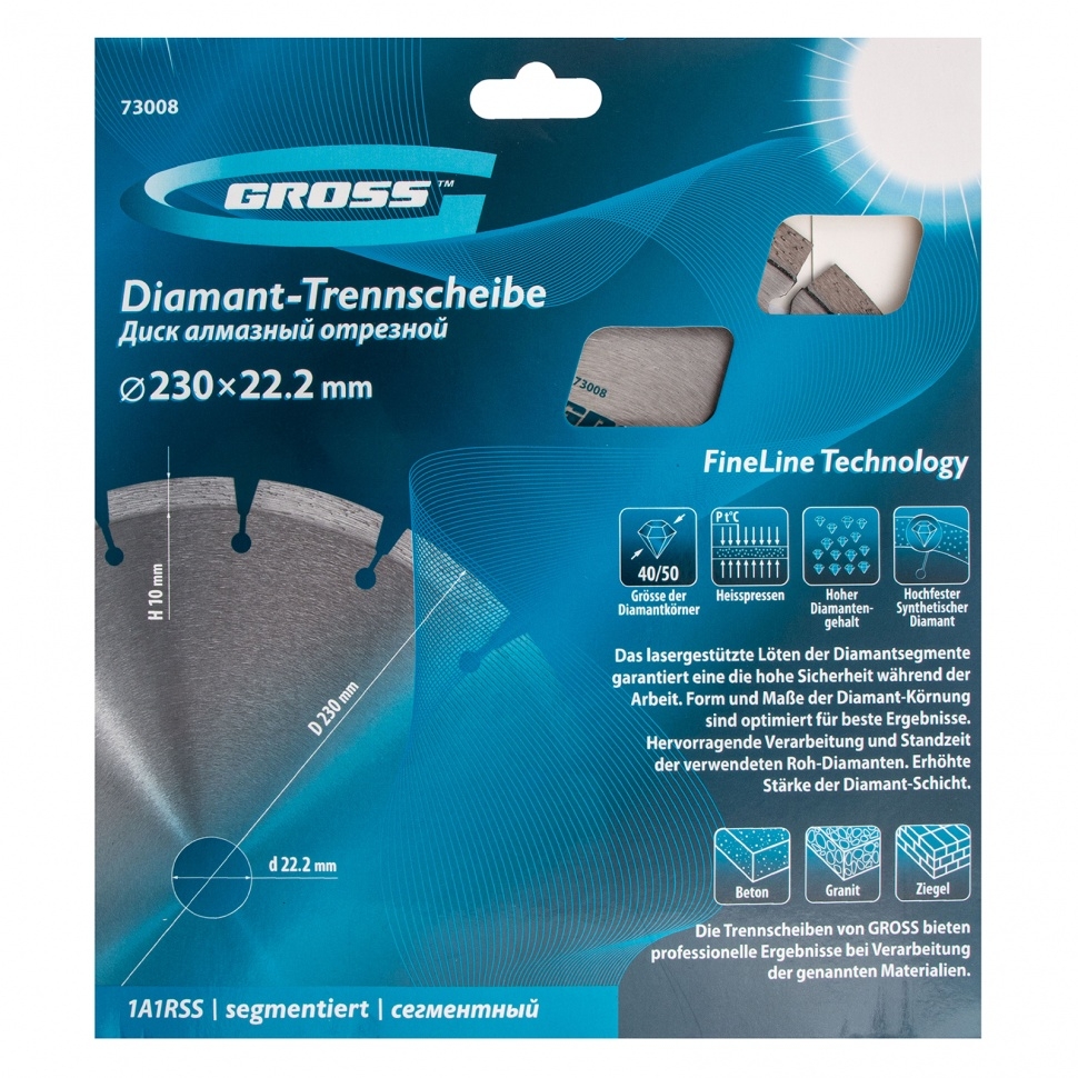 Диск алмазный лазерная приварка сегментов сухое резание 230х22,2 мм Gross