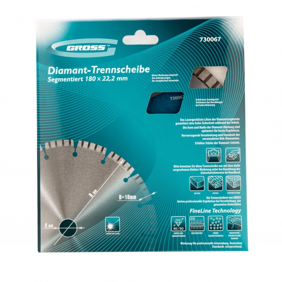 Диск алмазный лазерная приварка турбо-сегментов сухое резание 180х22,2 мм Gross