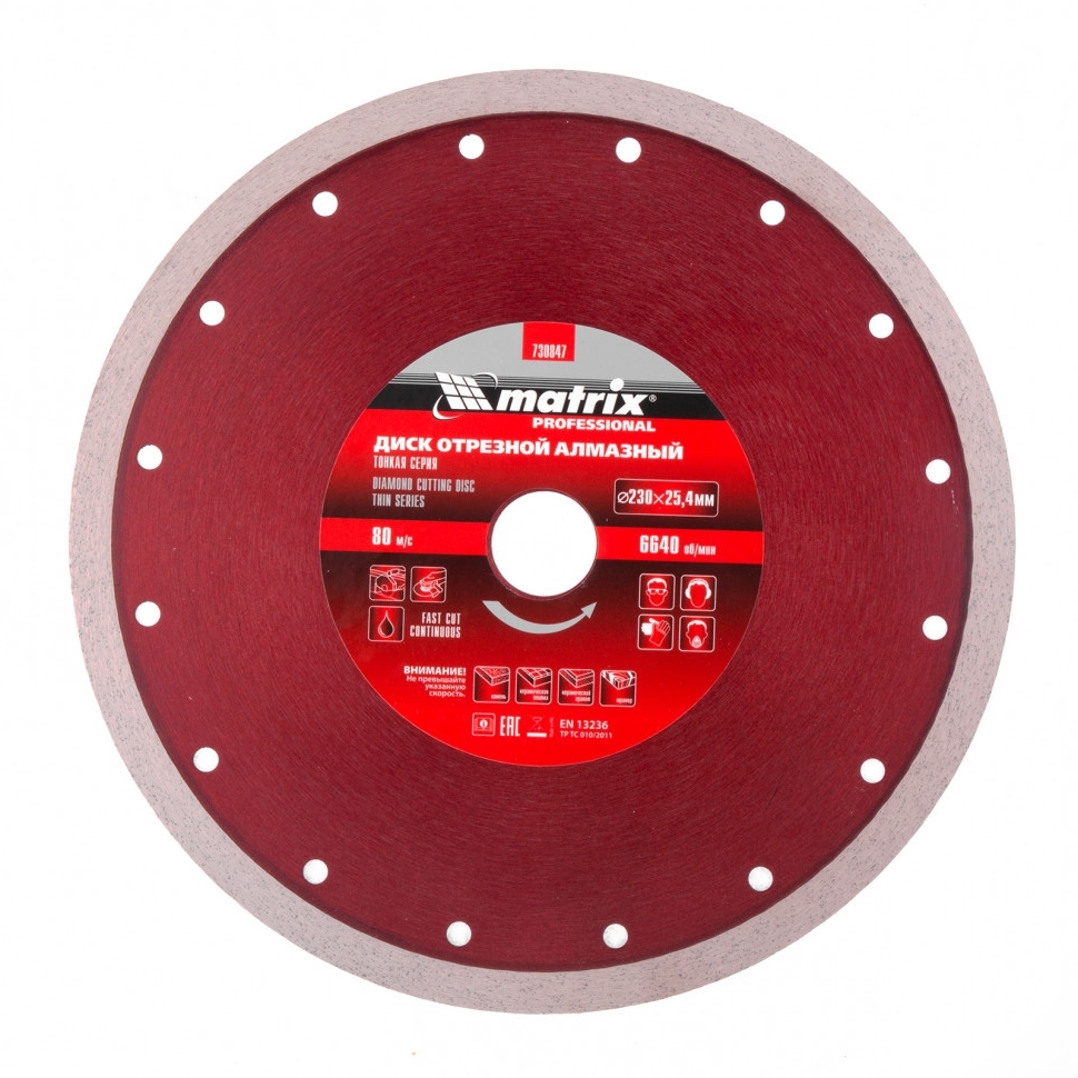 Диск алмазный тонкий сплошной мокрое резание 230х25,4 мм Matrix