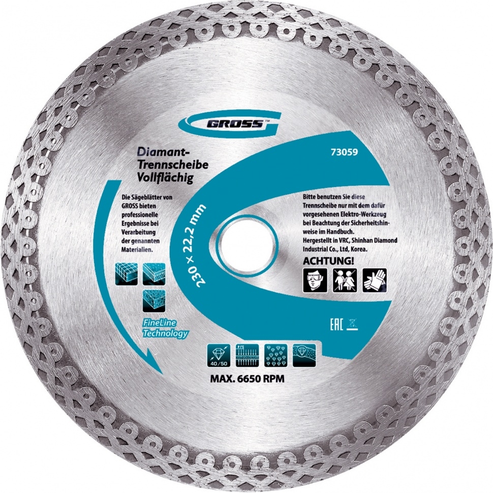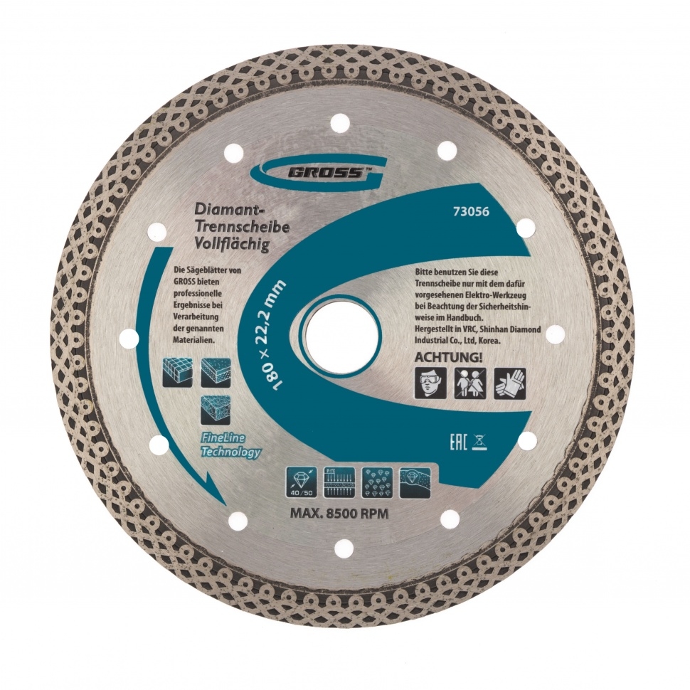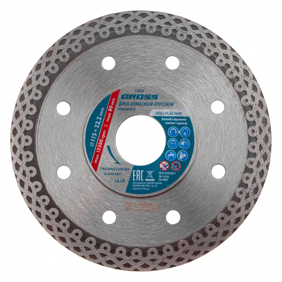 Тонкий сплошной алмазный диск Gross Jaguar ф115х22,2 мм 73052, мокрое резание, подходит для профессионального использования с УШМ или плиткорезами соответствующего типоразмера. Он используется для резки мокрым методом твердых материалов: гранита, керамогранита, плитки, мрамора и камня. Диск оставляет ровный срез без трещин и сколов за счет сплошной формы. При мокрой резке вода охлаждает диск и удаляет пыль с рабочей зоны, поэтому он легко справляется с большими объемами работ. Тонкий диск 1,2 мм значительно увеличивает скорость реза. Продуманная форма рабочей части не только позволяет проводить мокрое шлифование, но и допускает кратковременное сухое резание материалов.