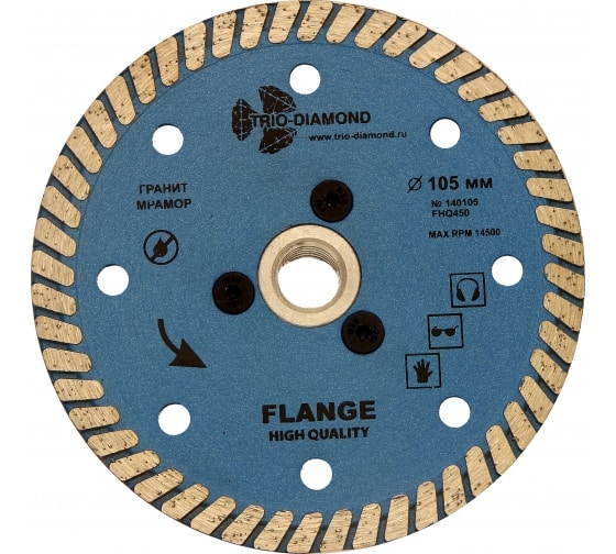 Диск алмазный отрезной Турбо с фланцем Grand hot press (105 мм; М14) TRIO-DIAMOND FHQ450