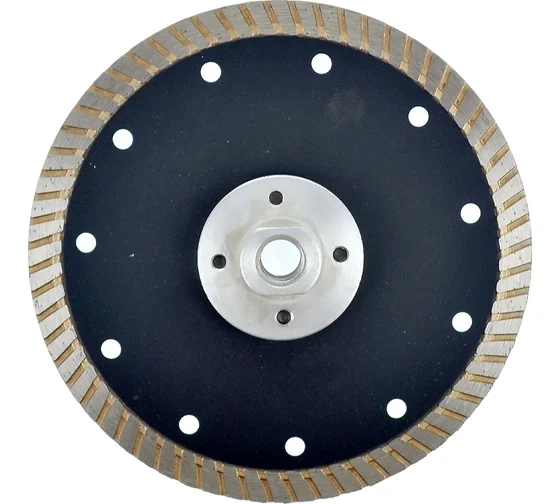 Алмазный диск по граниту турбо с фланцем применяется для резки гранита, мрамора. Фланец не только позволяет устанавливать данный диск на УШМ без зажимной гайки, но и значительно усиливает корпус диска, что дает возможность работать с материалом под любым углом, создавая дополнительные возможности в работе.