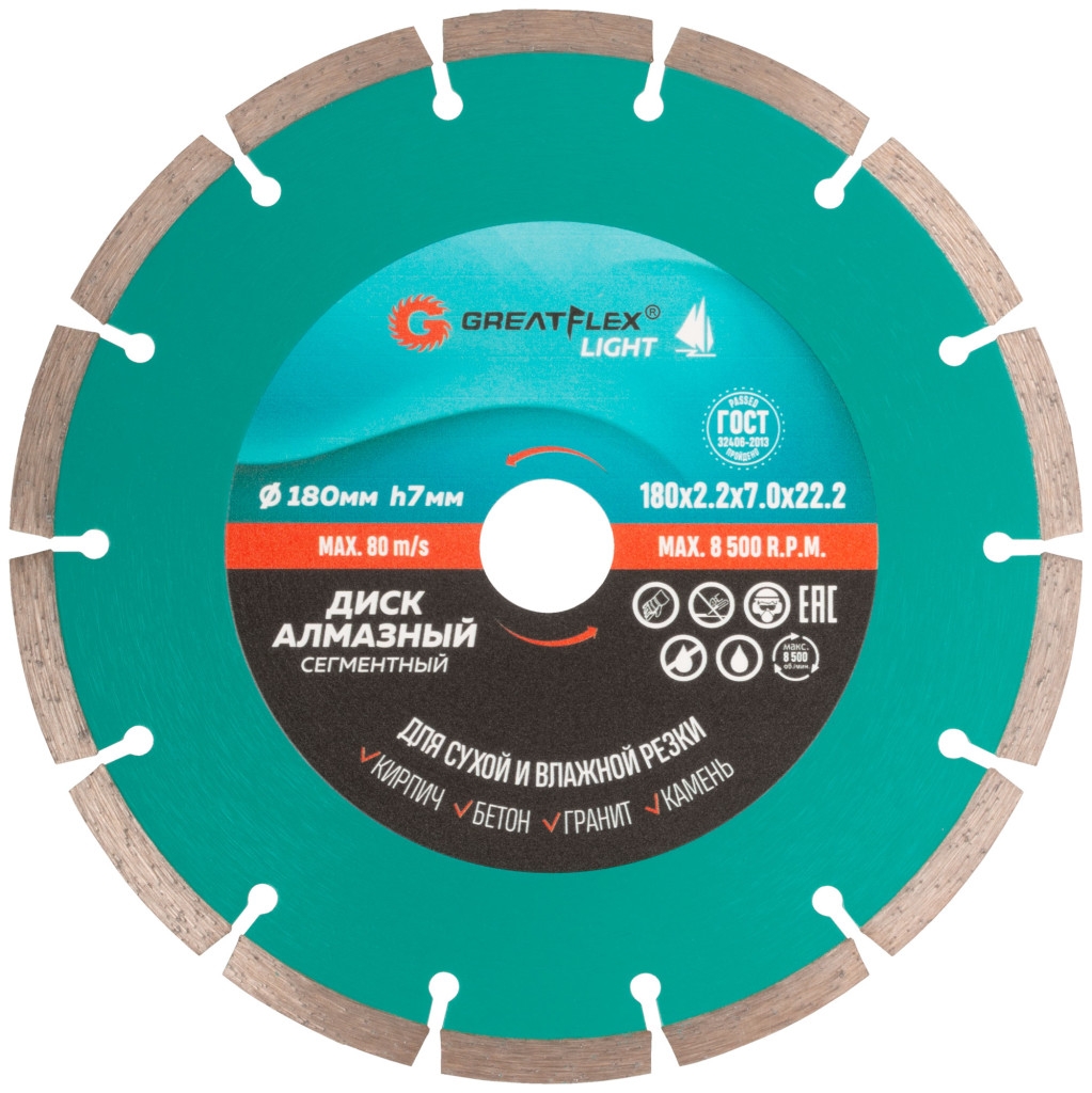 Диск отрезной алмазный сегментный GreatFlex Light 180х2,2х7,0х22,2 мм