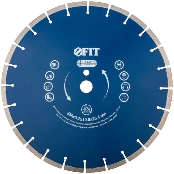 Диск отрезной алмазный сегментный (сухая и влажная резка) д/бетона,камня 350х3,2х10,0х25,4 мм