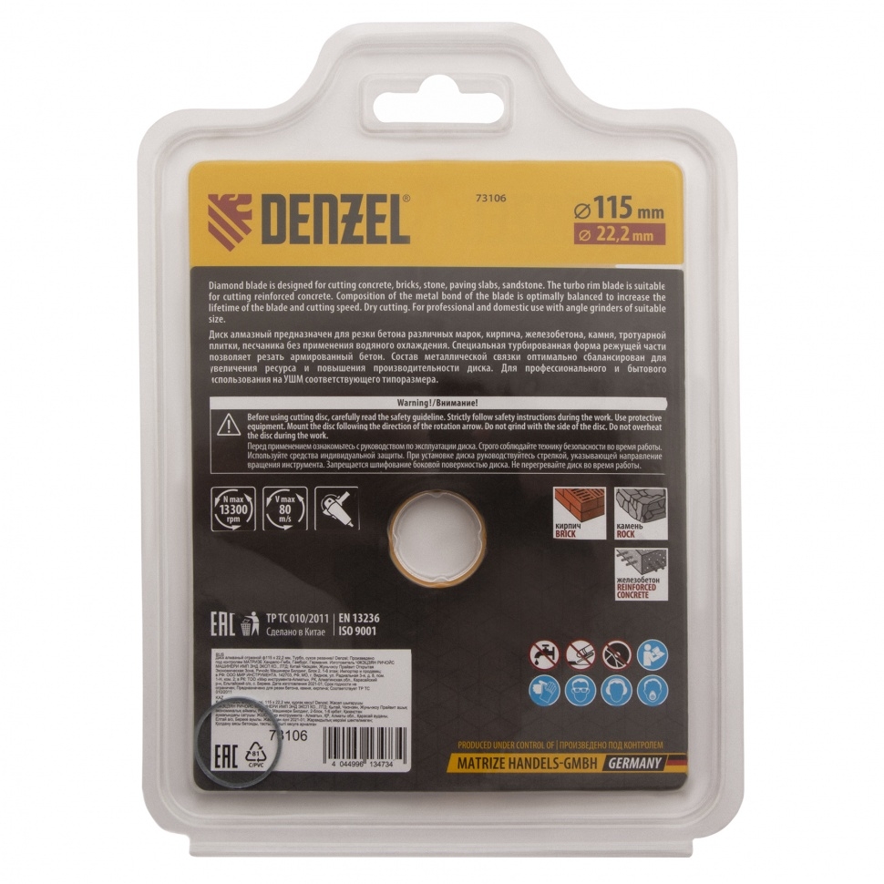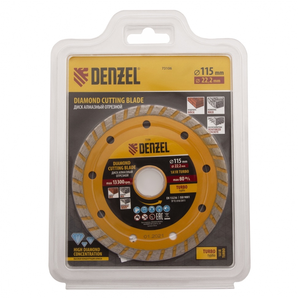 | Диск отрезной алмазный сегментный турбо сухое резание 115х22,2 мм Denzel | 73106 | 1 шт. |