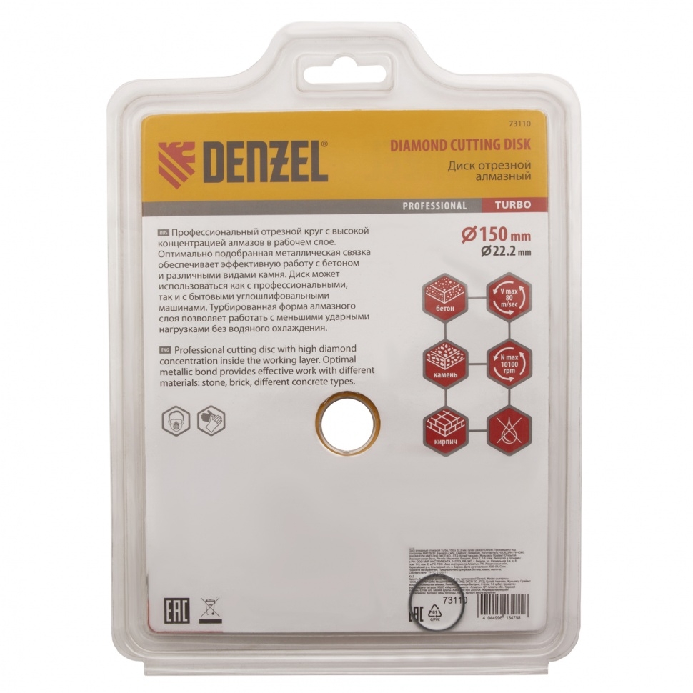 | Диск отрезной алмазный сегментный турбо сухое резание 150х22,2 мм Denzel | 73110 | 1 шт. |