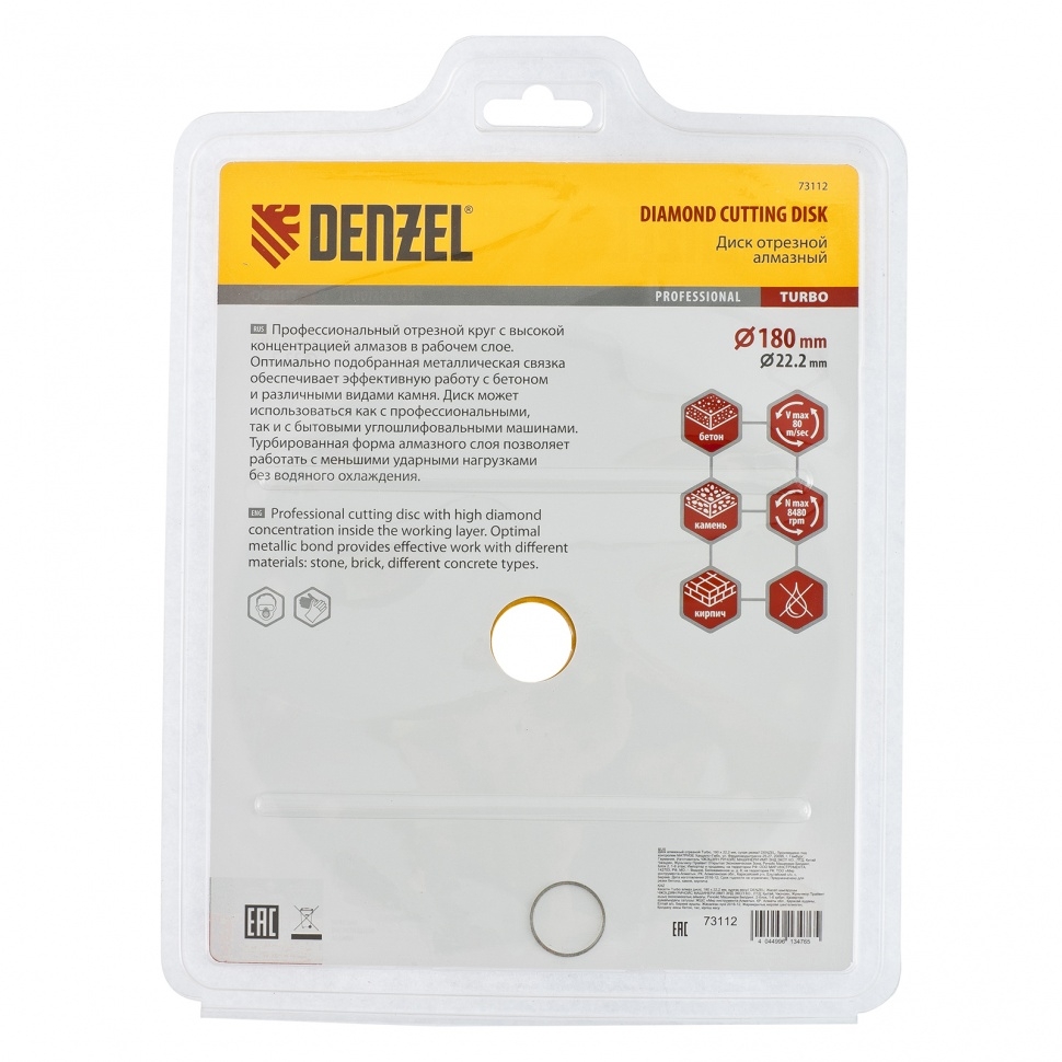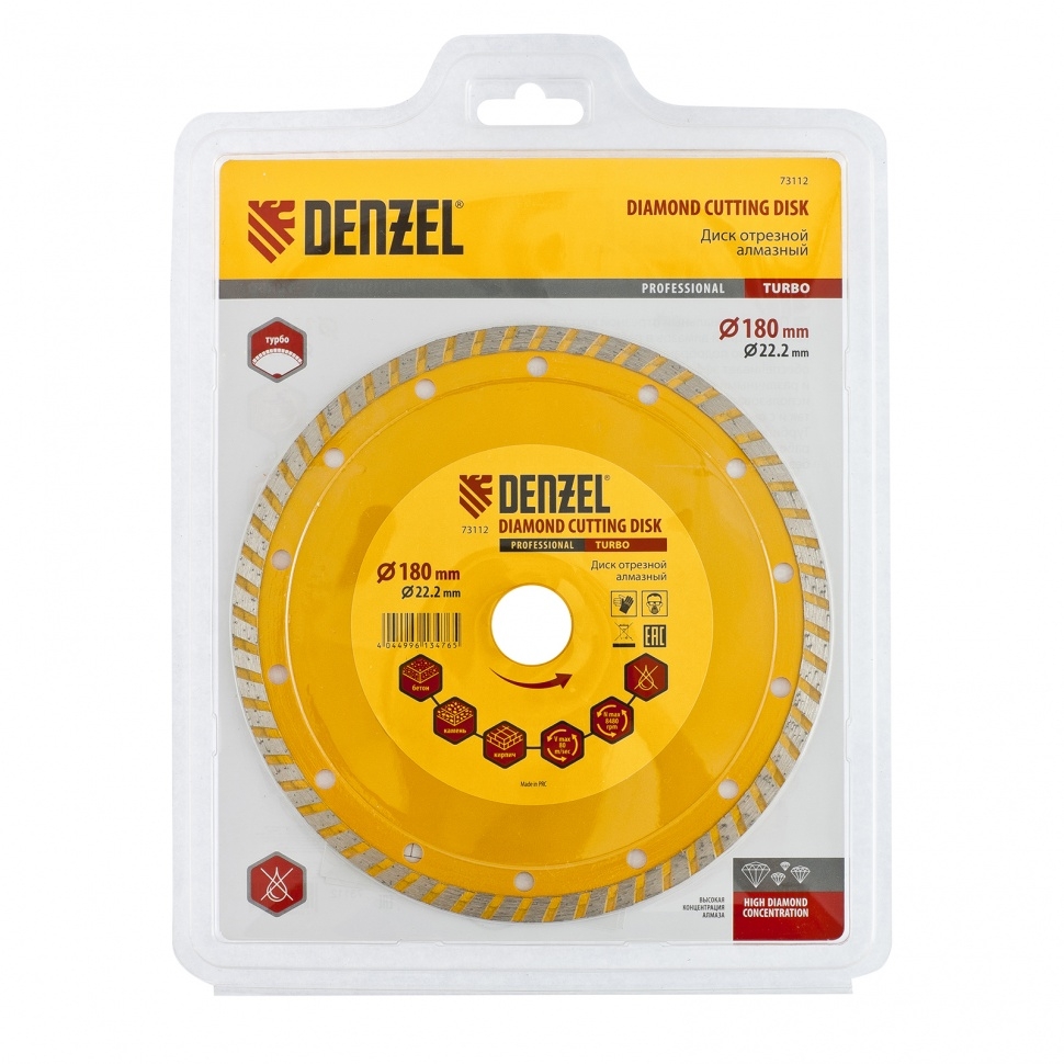 | Диск отрезной алмазный сегментный турбо сухое резание 180х22,2 мм Denzel | 73112 | 1 шт. |