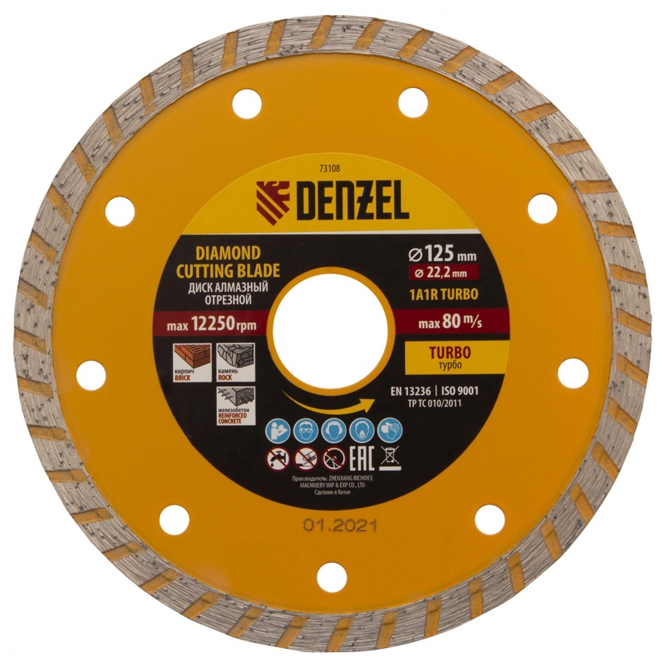 | Диск отрезной алмазный сегментный турбо сухое резание 125х22,2 мм Denzel | 73108 | 1 шт. |