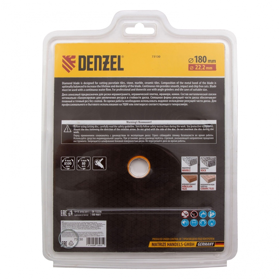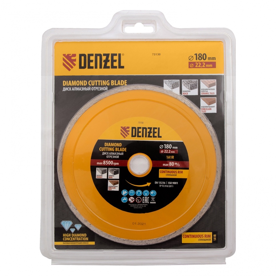 Диск отрезной алмазный сплошной мокрое резание 180х22,2 мм Denzel
