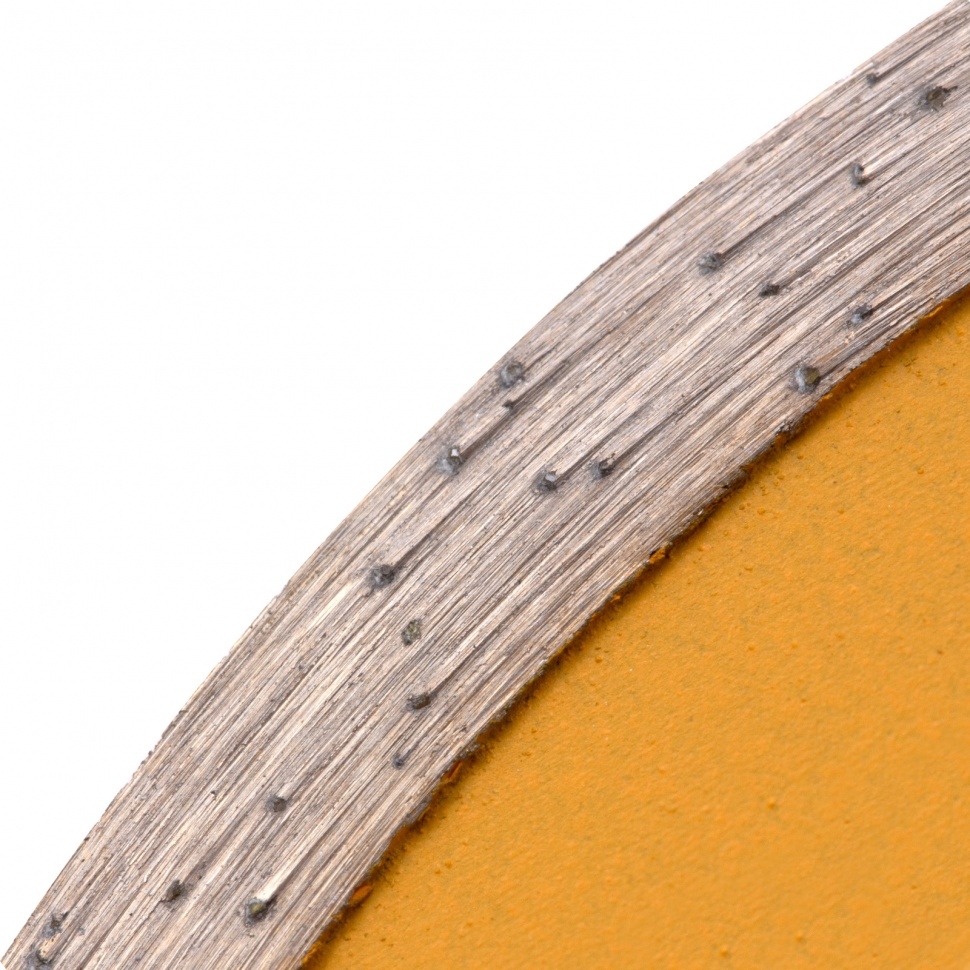 Отрезной алмазный диск Denzel Сплошной 73130, ф180 х 22,2 мм, используется для мокрого резания совместно с углошлифовальными машинами или плиткорезами с посадочным диаметром 22,2 мм. С его помощью режут камень, мрамор, керамогранитную и керамическую плитку. Диск отличается хорошей производительностью за счет высокой скорости реза, поэтому подходит для профессионального применения.Преимущества Сплошная конструкция обеспечивает эффективное выполнение большого объема работ даже при резании хрупких материалов. Режущая кромка шириной 7 мм позволяет получить аккуратный срез без зазубрин и сколов. Диск обладает высоким рабочим ресурсом благодаря увеличенной концентрации алмазов в рабочем слое. Отрезной диск изготовлен способом холодного прессования.