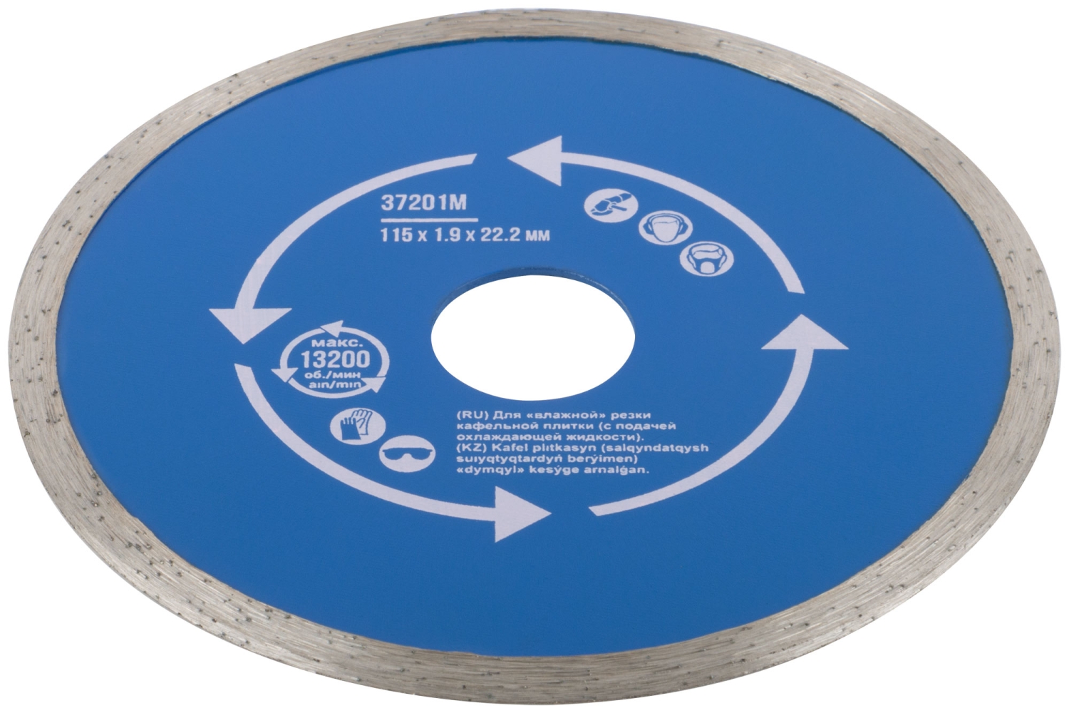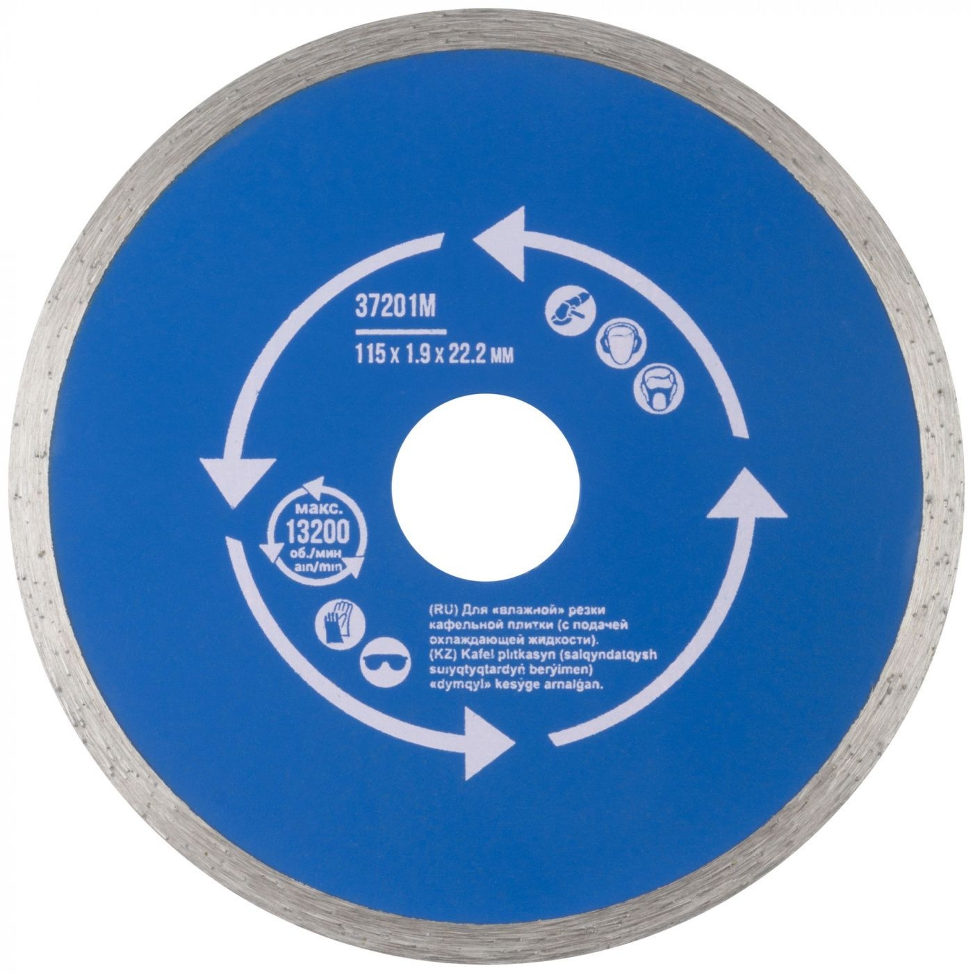 | Диск отрезной алмазный сплошной (влажная резка) для раб с кафелем 115х1,9х5,0х22,2 мм | 37201М | 1 шт. |