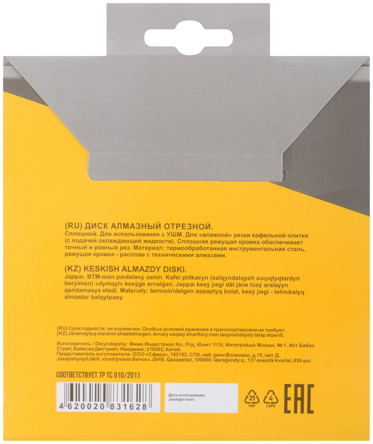 Диск отрезной алмазный сплошной (влажная резка) для раб с кафелем мм