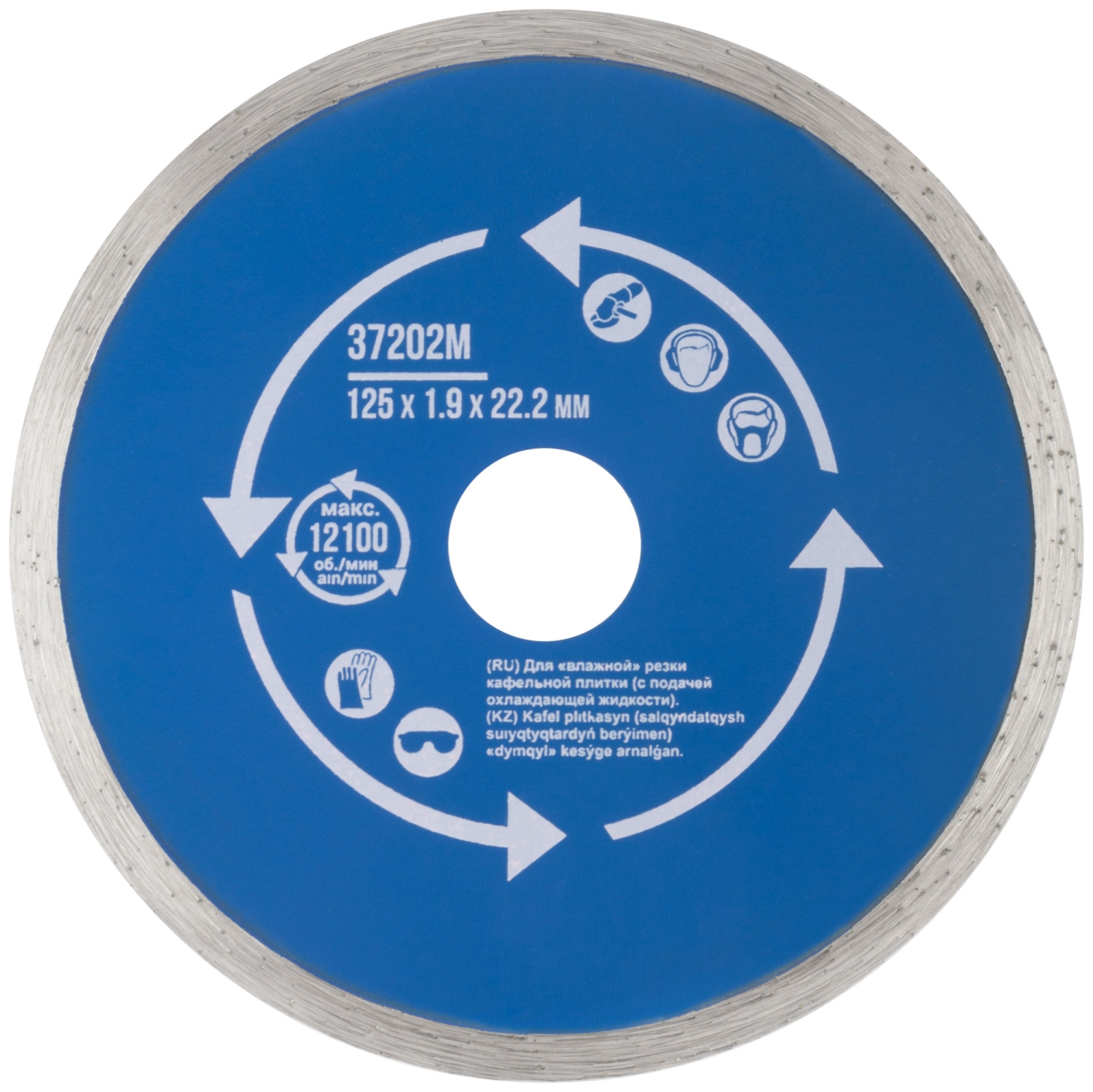 | Диск отрезной алмазный сплошной (влажная резка) для раб с кафелем 125х1,9х5,0х22,2 мм | 37202М | 1 шт. |