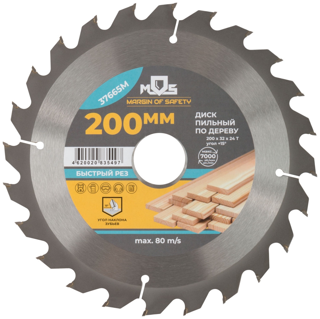 Диск пильный для циркуляр.пил по дереву 200х32х24Т + 2 кольца 32/30 и 30/20 мм