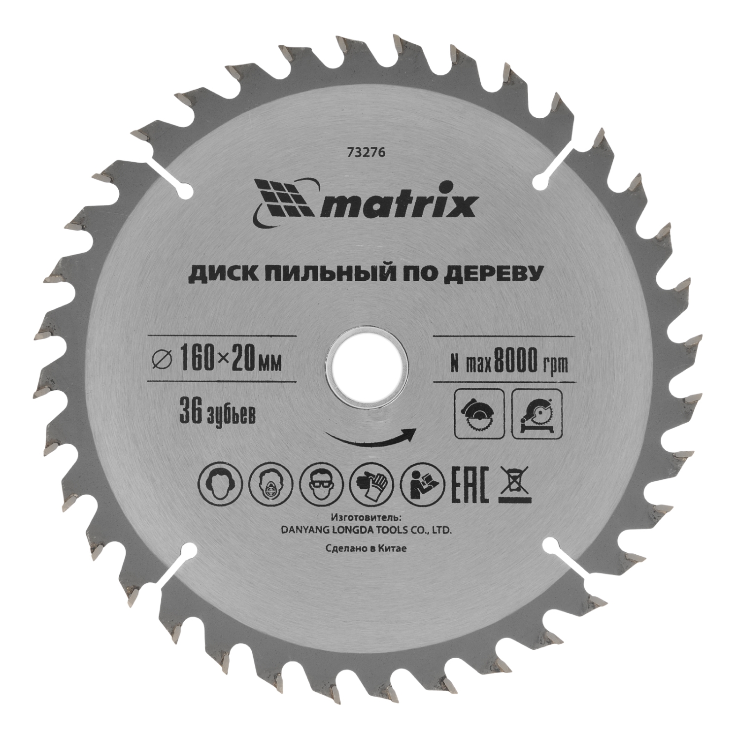 Пильный диск по дереву Matrix ф160 х 20 мм 73276 с 36 зубьями и переходным кольцом 20/16 применяется в качестве оснастки на циркулярных и торцовочных пилах с соответствующим внутренним и внешним диаметром. Он используется для продольного/поперечного реза материалов из мягкой и твердой древесины, ДСП, ДВП, фанеры, столярных плит. В комплект входит переходное кольцо 20/16 для возможности самостоятельного изменения посадочного диаметра при необходимости.