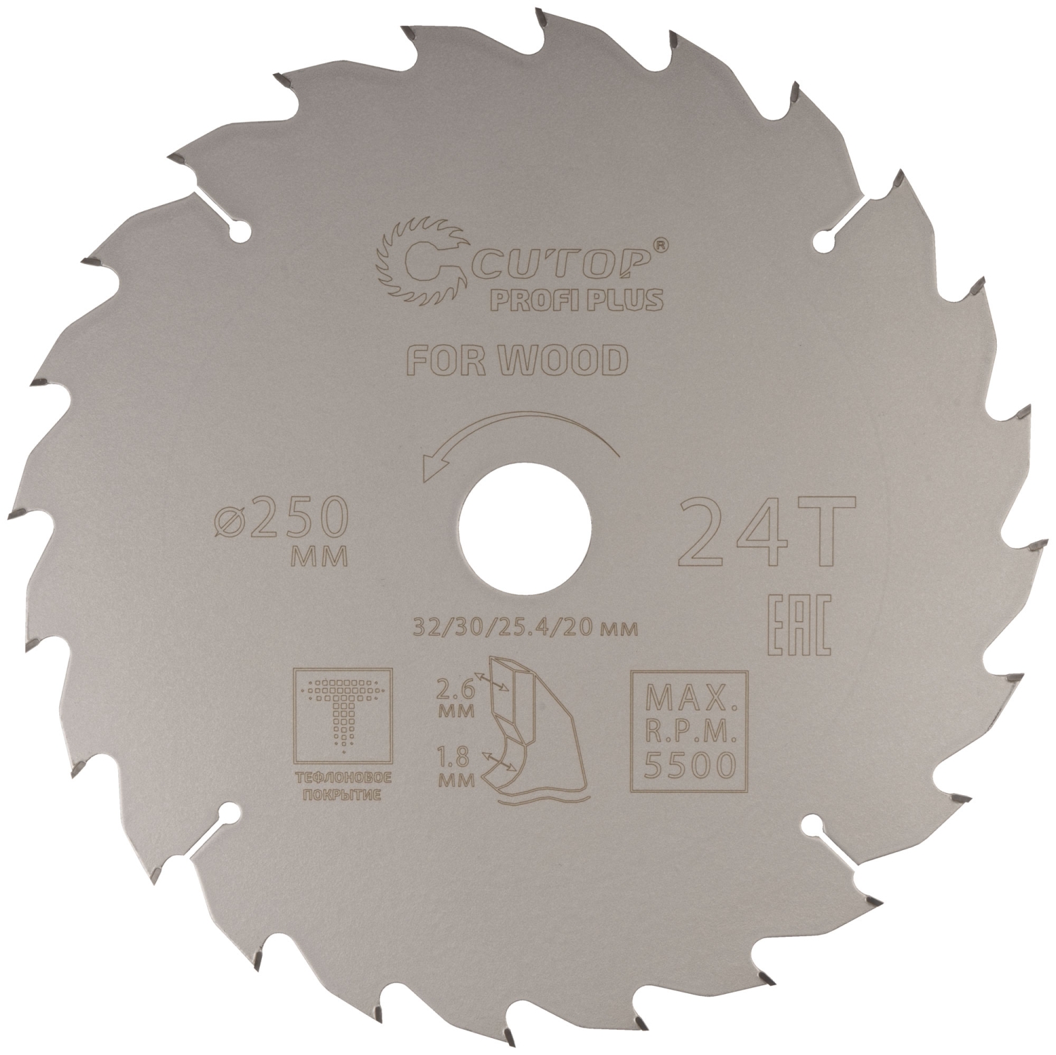 Диск пильный по дереву с тефл.покр.24Т CUTOP Profi Plus 250х1,8/2,6х32/30/25,4/20 мм
