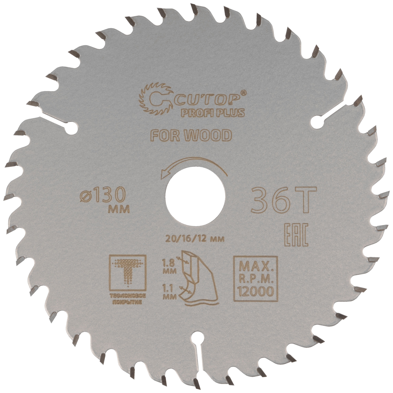 Диск пильный по дереву с тефл.покр.36Т CUTOP Profi Plus 130х1,1/1,8х20/16/12 мм