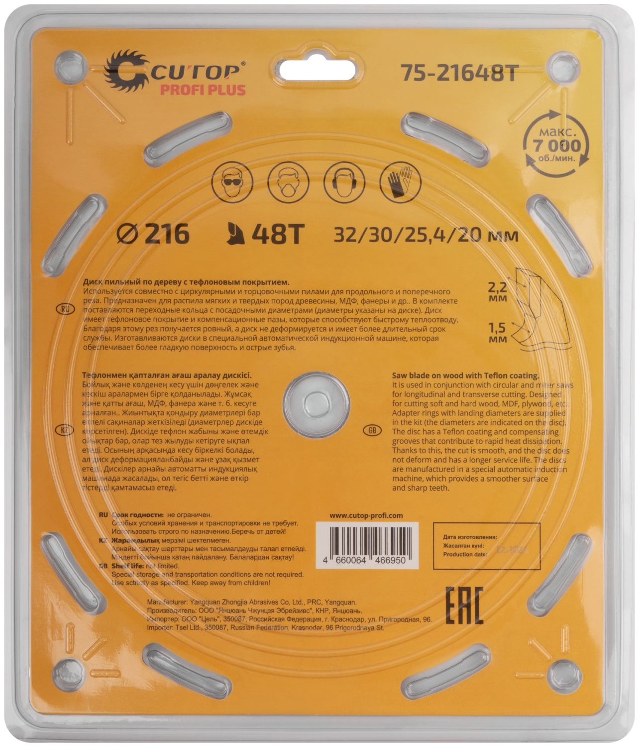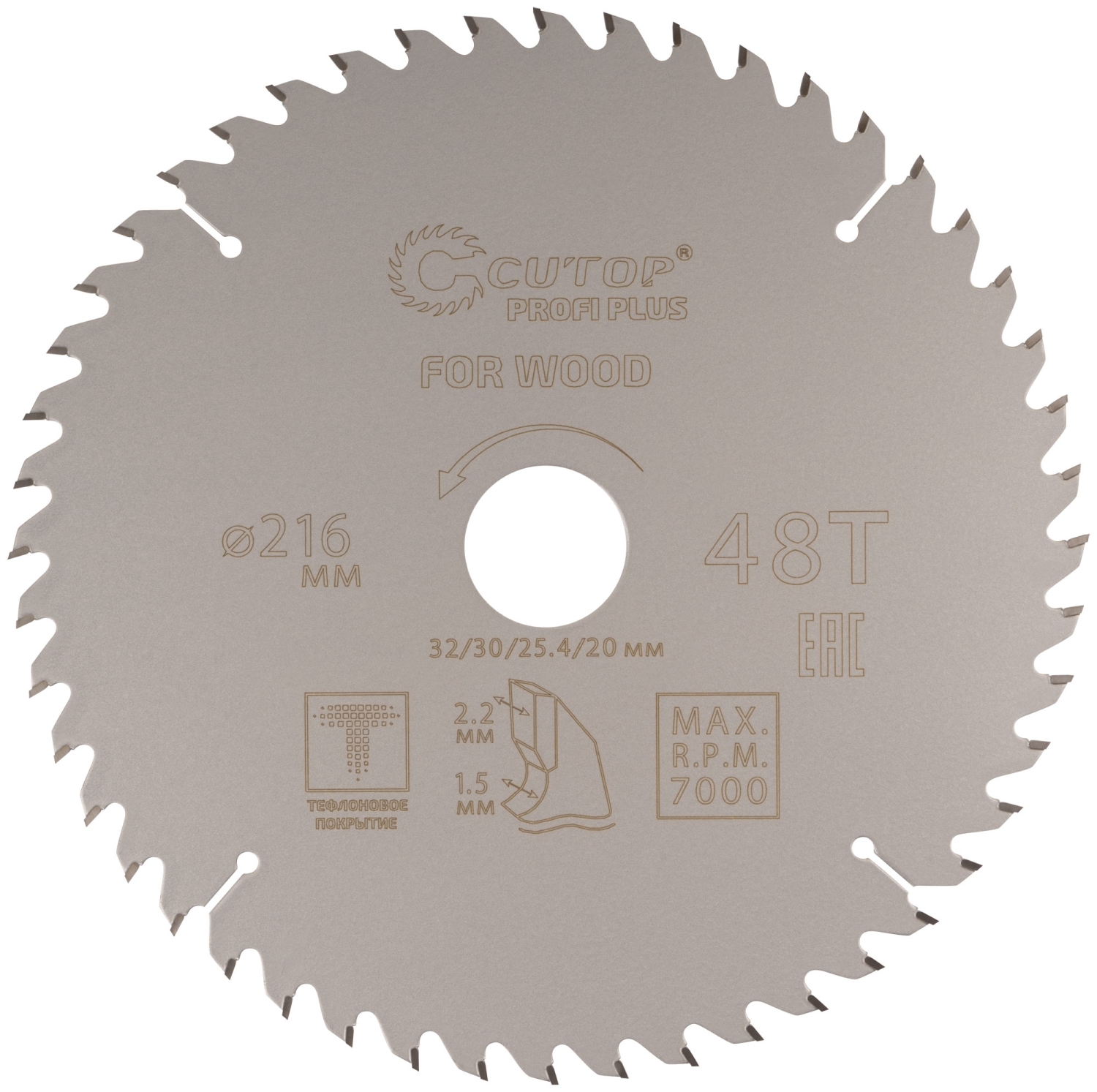 | Диск пильный по дереву с тефл.покр.48Т CUTOP Profi Plus 216х1,5/2,2х32/30/25,4/20 мм | 75-21648Т | 1 шт. |