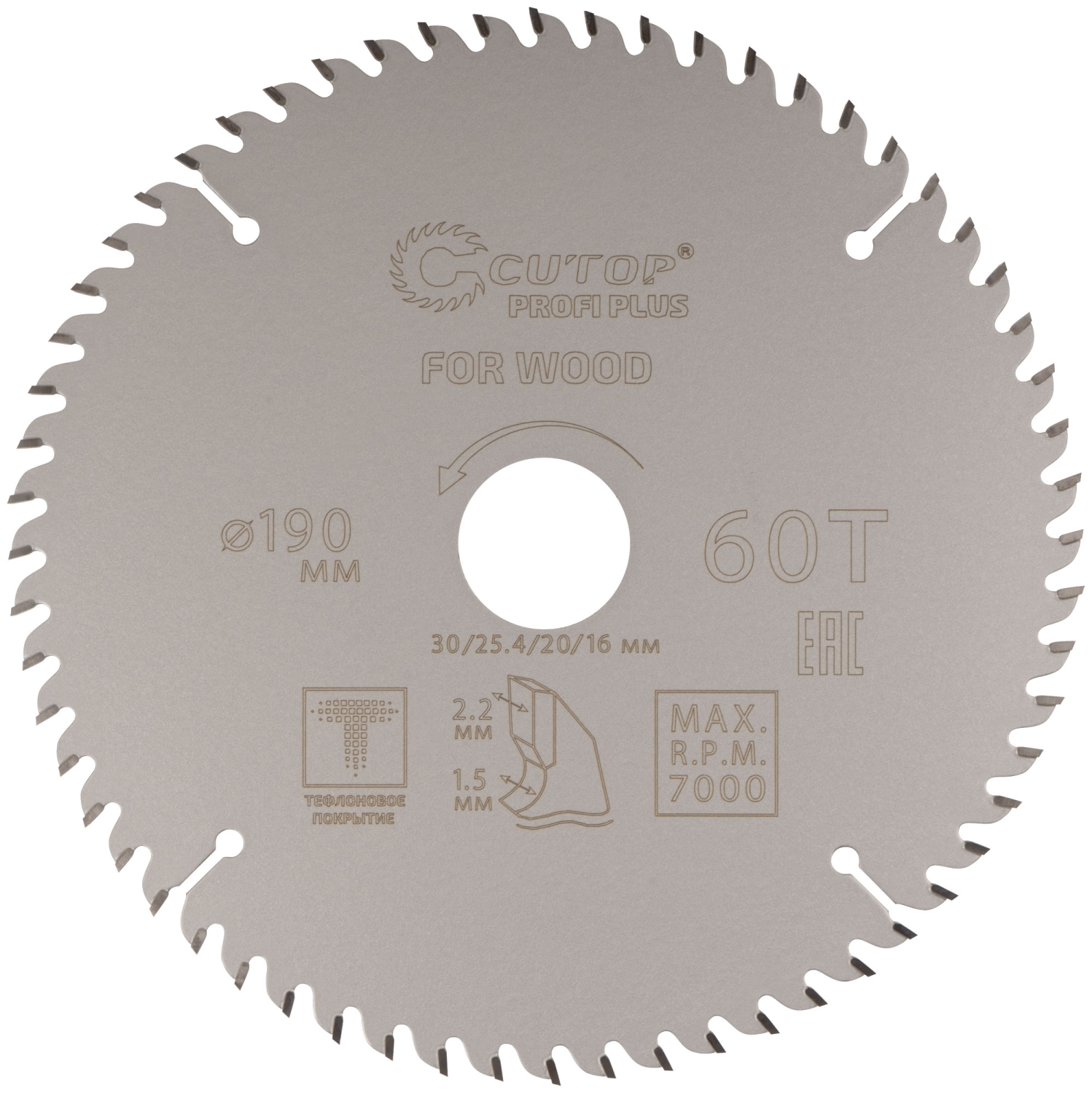 Диск пильный по дереву с тефл.покр.60Т CUTOP Profi Plus 190х1,5/2,2х30/25,4/20/16 мм