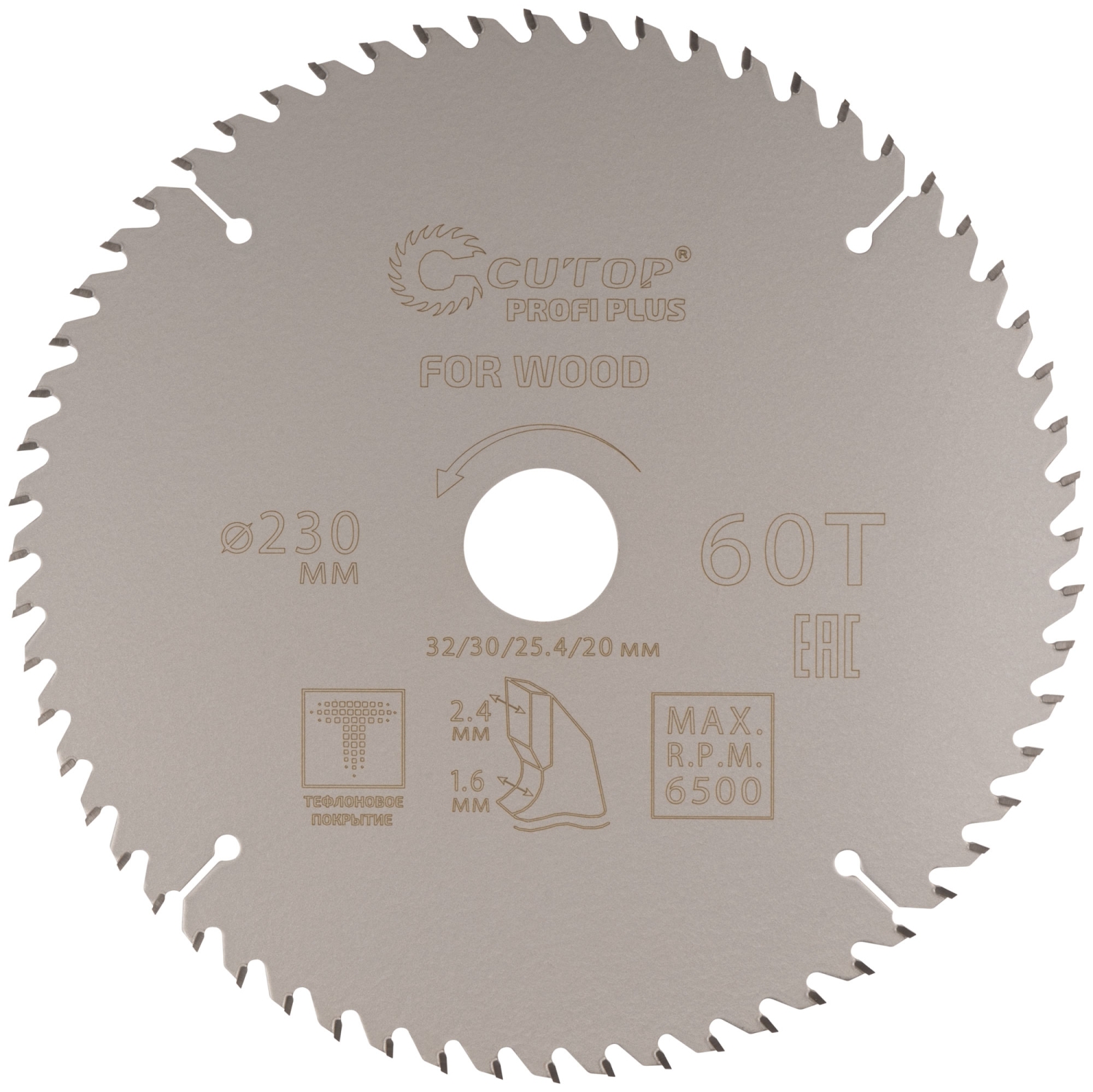 Диск пильный по дереву с тефл.покр.60Т CUTOP Profi Plus 230х1,6/2,4х32/30/25,4/20 мм