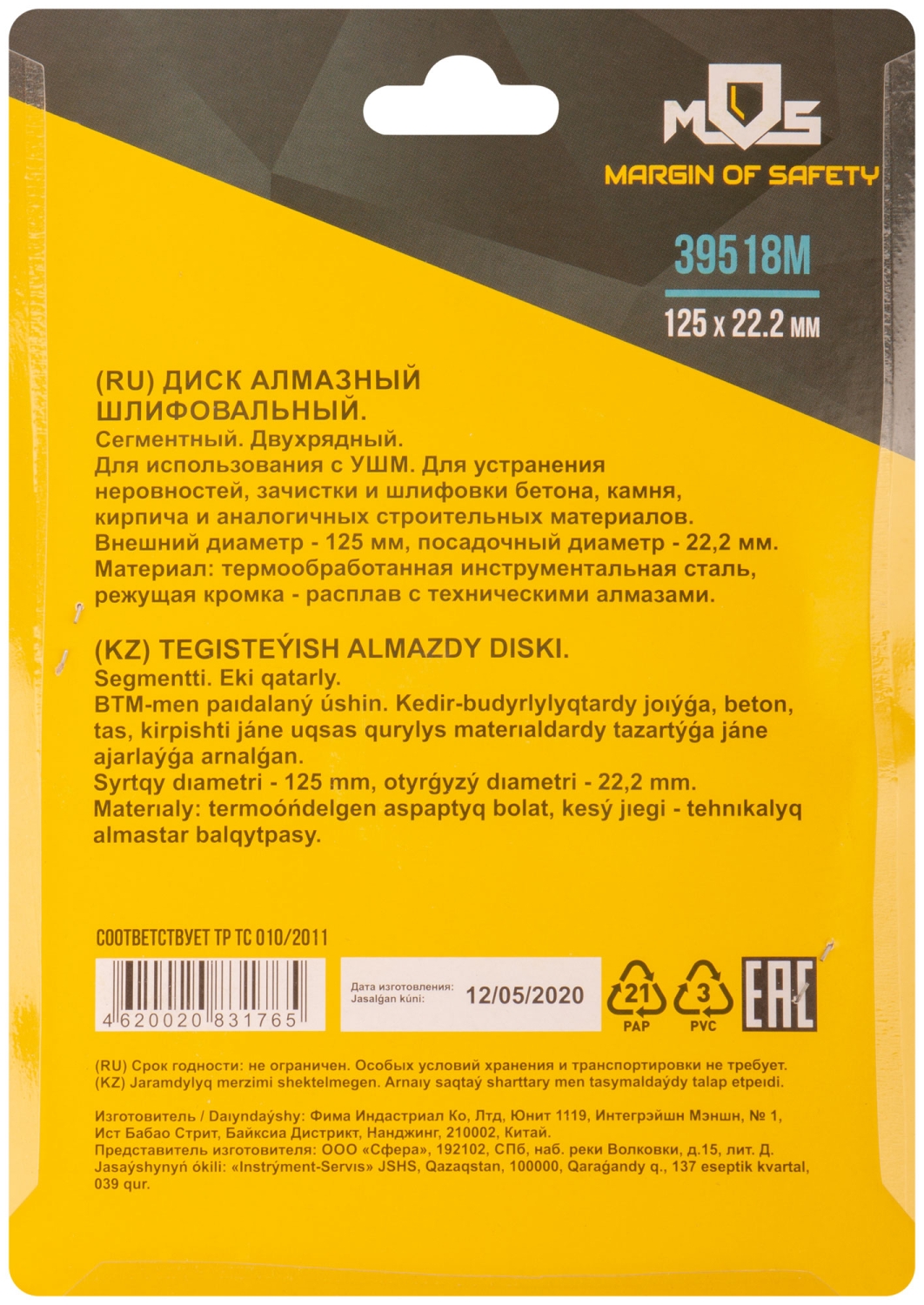 Диск шлифовальный алмазный, посадочн.д.22,2 мм, 2 ряда сегментов 125мм