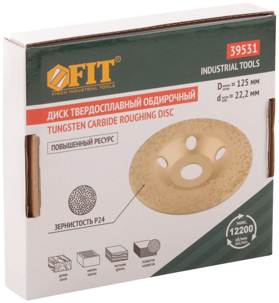 Диск твердосплавный шлифовальный торцевой наклонный. Повышенный ресурс. Для грубых первичных работ. Для придания формы и предварительного выравнивания древесины твердых и мягких пород, кирпича, песчаника, газобетона и других поверхностей, изготовленных из мягкого искусственного и натурального камня. Наклонная форма удобна при фигурной обработке и выборке формы в древесине. Материал: инструментальная сталь, напайки из карбида вольфрама. Упаковка: картонная коробка.
