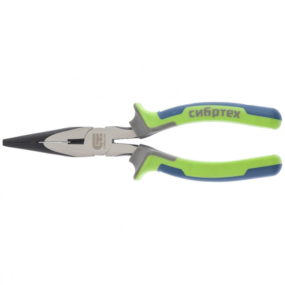 Длинногубцы прямые, фосфатирование, трехкомпонентные рукоятки 200 мм Сибртех