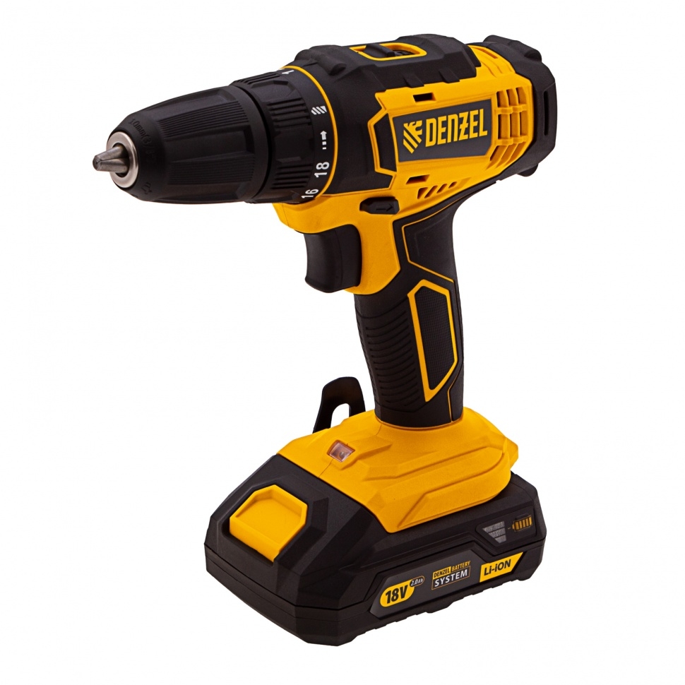 Аккумуляторная дрель-шуруповерт Denzel CDL-18-02BM 26116 с Li-Ion аккумуляторами 18 В предназначена для ввинчивания и вывинчивания винтов и шурупов, а также получения отверстий в различных конструкционных материалах: металле, древесине, пластмассе и т.п. Оптимальна для интенсивного использования как в быту, так и на строительных объектах, пригодится в процессе ремонта, при сборке мебели и т.д. Система защиты от перегрузки, перегрева, глубокой разрядки и нежелательного перезаряда обеспечивает долговечность инструмента и комфортную работу. 18+1 ступень регулировки — дрель-шуруповерт удобно настроить под материалы разной жесткости и получить высококачественный результат. Две скорости вращения (0-400/0-1500 об/мин) — первая позволяет работать с крепежом, вторая — сверлить отверстия. Точный и аккуратный результат — тормоз выбега мгновенно останавливает двигатель, исключая риск перетяжки крепежа. Долговечность — шестерни редуктора выполнены из металла, корпус — из ударопрочного пластика.