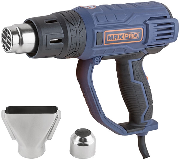 Фен технический 2000 Вт; 3 режима работы: 1) 60 °C, 2) 350 °C, 3) 600 °C; максимальный объем потока воздуха 500 л/мин; термореле для защиты от перегрева; резиновый кабель; резиновые вставки; 0,76 кг; коробка.