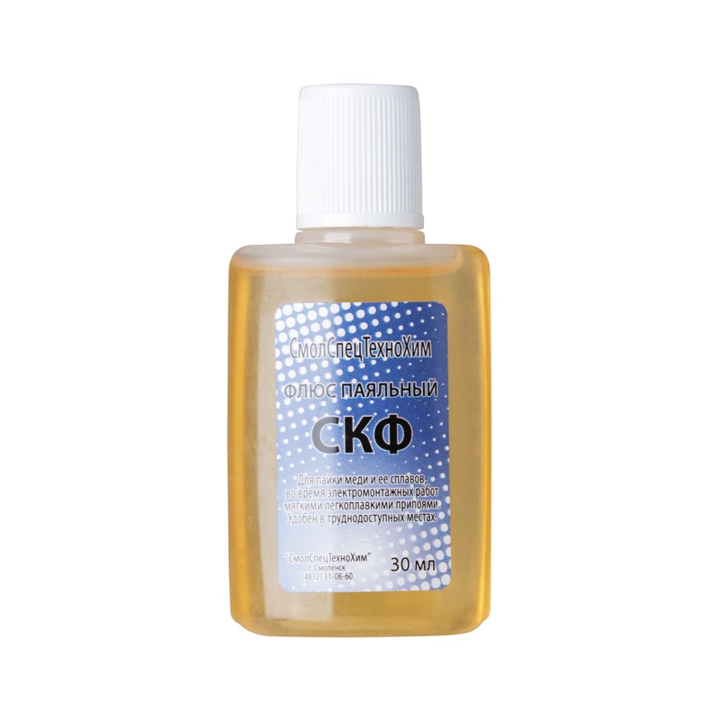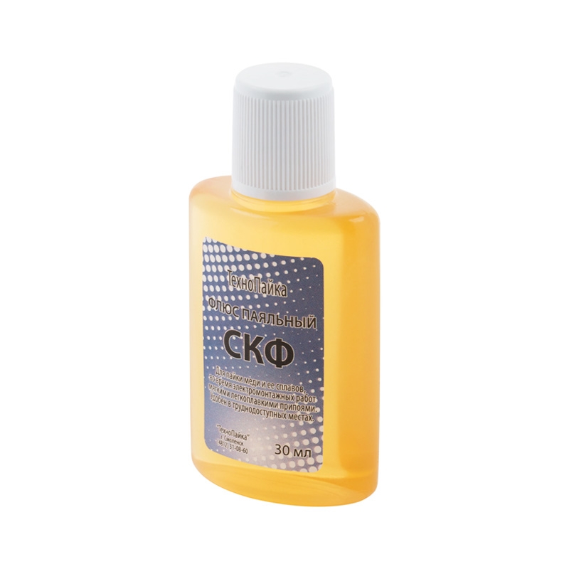 Флюс СКФ спирто-канифольный, 30 мл предназначен для низкотемпературной пайки электро- и радиотехнических приборов. Не требует промывки, не вызывает коррозий металлов. Удобный флакон с капельницей.