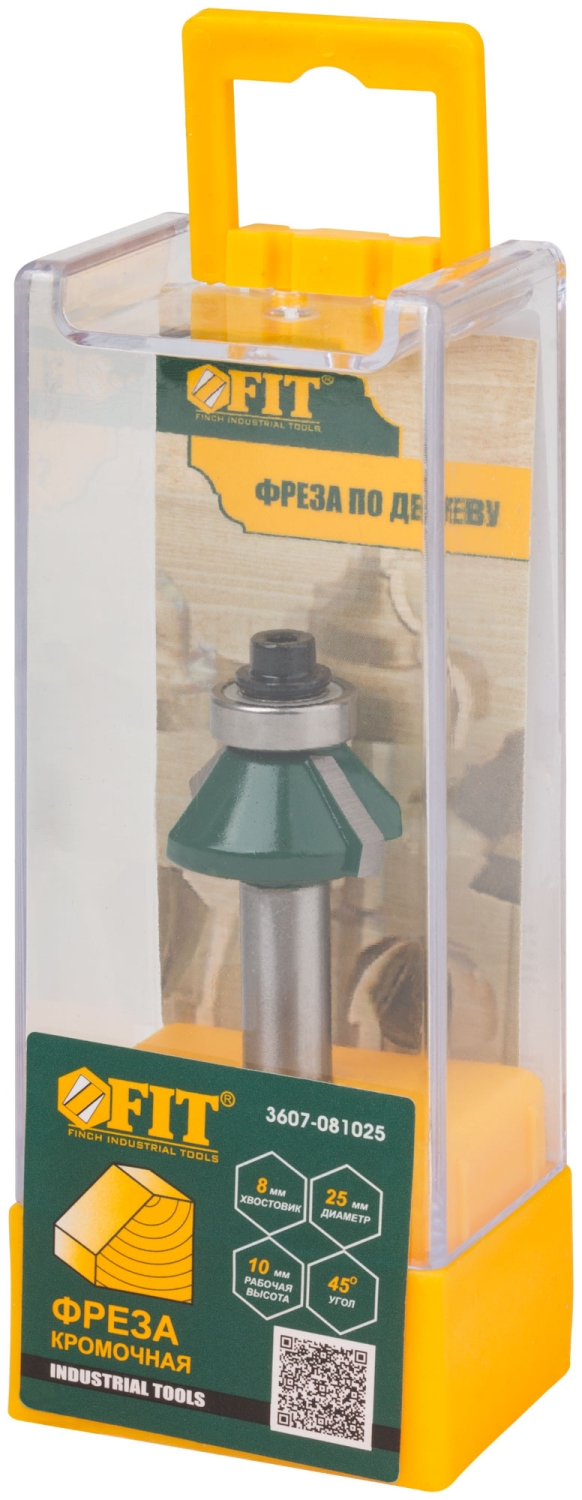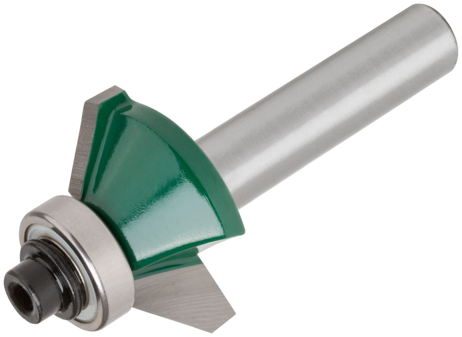 Используется для работ по дереву. С нижним подшипником. Для фрезерования кромок. Угол при вершине 45°. Цилиндрический хвостовик. Материал: инструментальная сталь, с твердосплавными режущими вставками. Упаковка: пластиковая коробка.