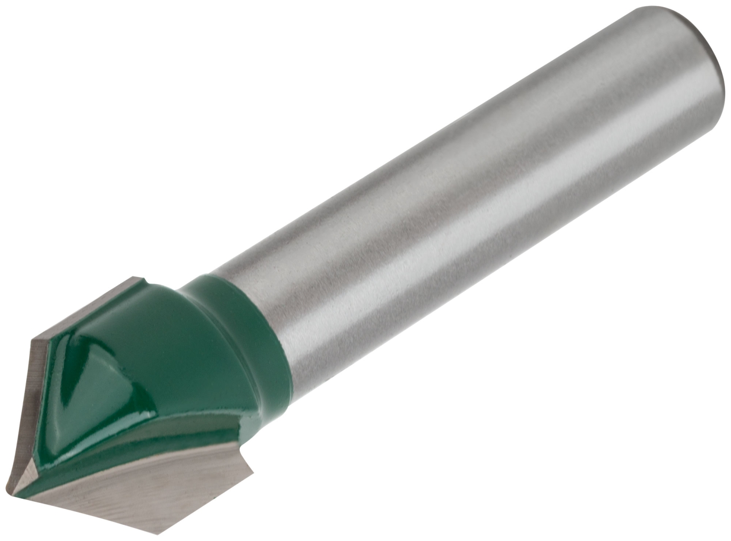 Используется для работ по дереву. Для фрезерования пазов. Угол при вершине 90°. Цилиндрический хвостовик. Материал: инструментальная сталь, с твердосплавными режущими вставками. Упаковка: пластиковая коробка.