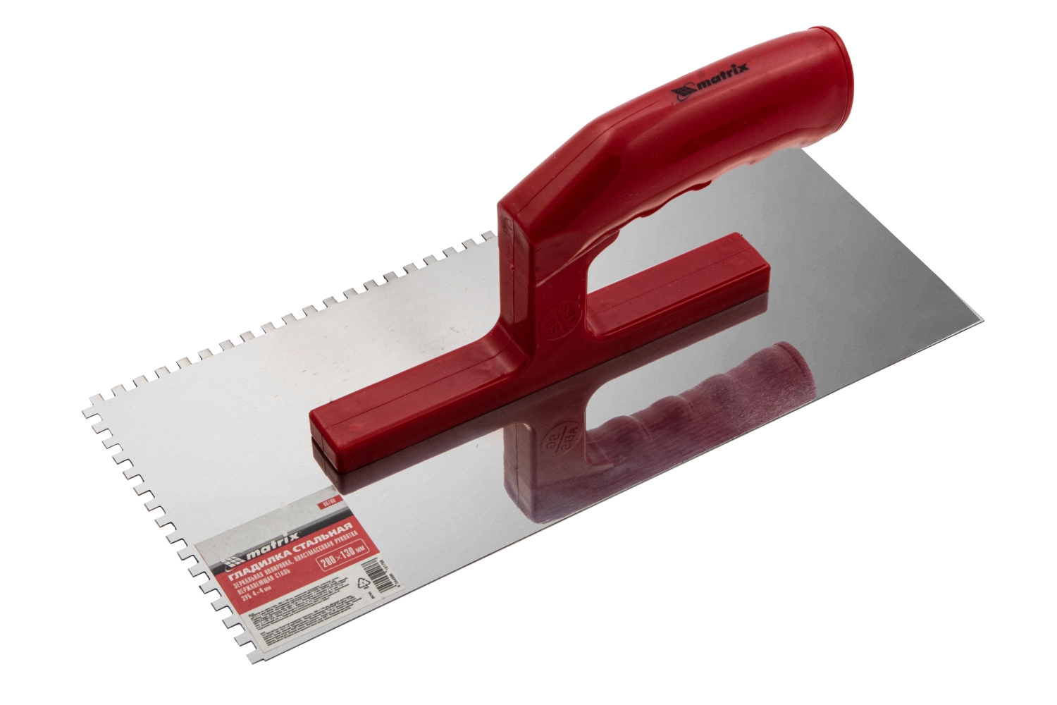 Гладилка стальная 280х130 мм зеркальн.полир.пластмас.ручка зуб 4х4 мм Matrix