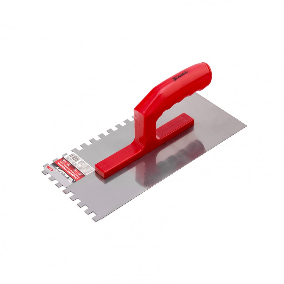 Гладилка Matrix 86780 размером 280 x 130 мм, из нержавеющей стали, с зубьями 4 x 4 мм, зеркальной полировкой и пластмассовой ручкой, пригодится любителям и частным мастерам при проведении ремонтных работ. Она позволяет равномерно наносить строительные растворы и плиточный клей на подготовленные под отделку поверхности.