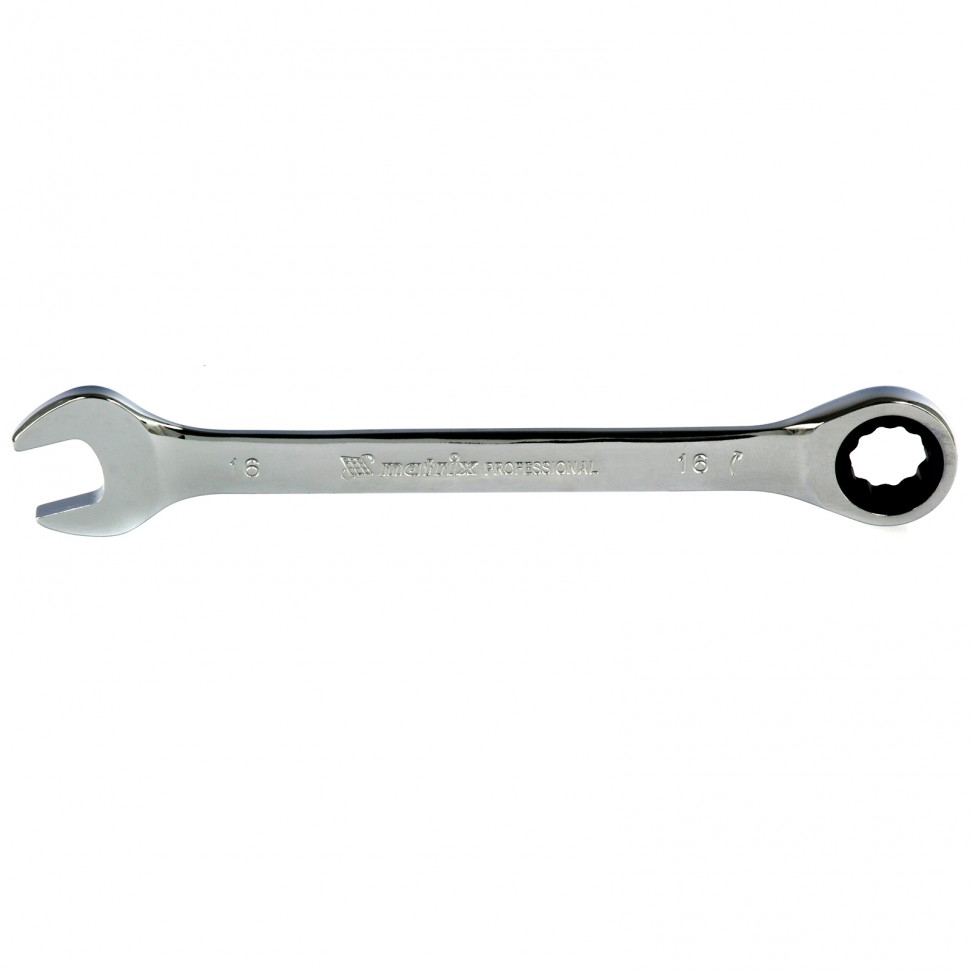 Ключ комбинированный трещоточный зеркальный хром 16 мм CrV Matrix
