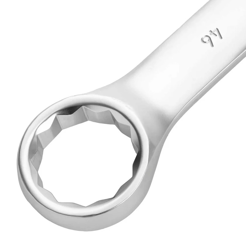 Ключ комбинированный 46 мм, никелированный, Сибртех предназначен для работы с резьбовым крепежом размером 46 мм. Инструмент оснащён двумя рабочими частями — рожковой и накидной, что расширяет его функциональность. Кольцевой зев с 12 гранями позволяет работать с болтами и гайками как с шестигранным, так и с двенадцатигранным профилем.