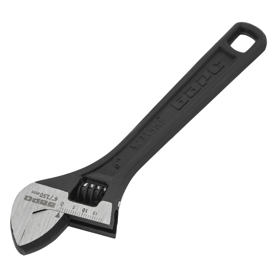 Разводной ключ Барс 15502 длиной 150 мм используется для монтажа и демонтажа крепежных элементов. Заменяет собой целый комплект обычных гаечных ключей. Губки можно разводить на точно заданное расстояние, что позволяет захватывать детали различного размера. Разводной ключ пригодится для проведения слесарных, сантехнических, ремонтных работ. Прочность — ключ изготовлен из высококачественной хромованадиевой стали.