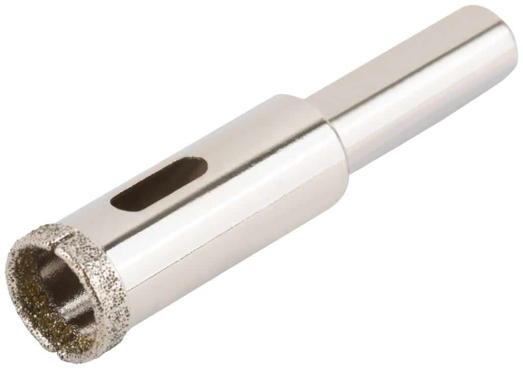 Трехгранный хвостик . Для вырезания круговых отверстий в керамограните, камне, стекле, кафельной плитке. Влажное сверление. Материал: инструментальная сталь, режущая кромка содержит порошок из технических алмазов.