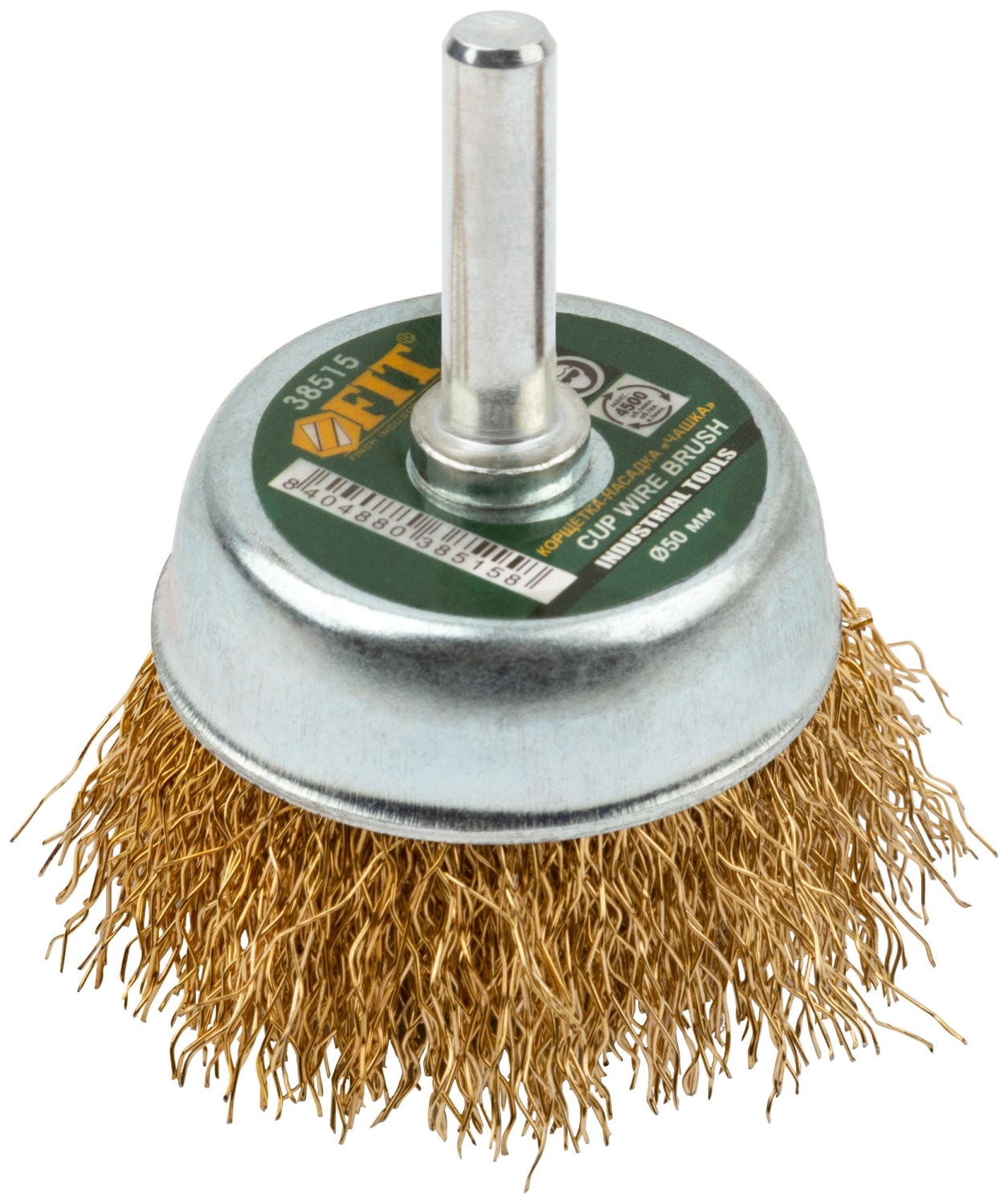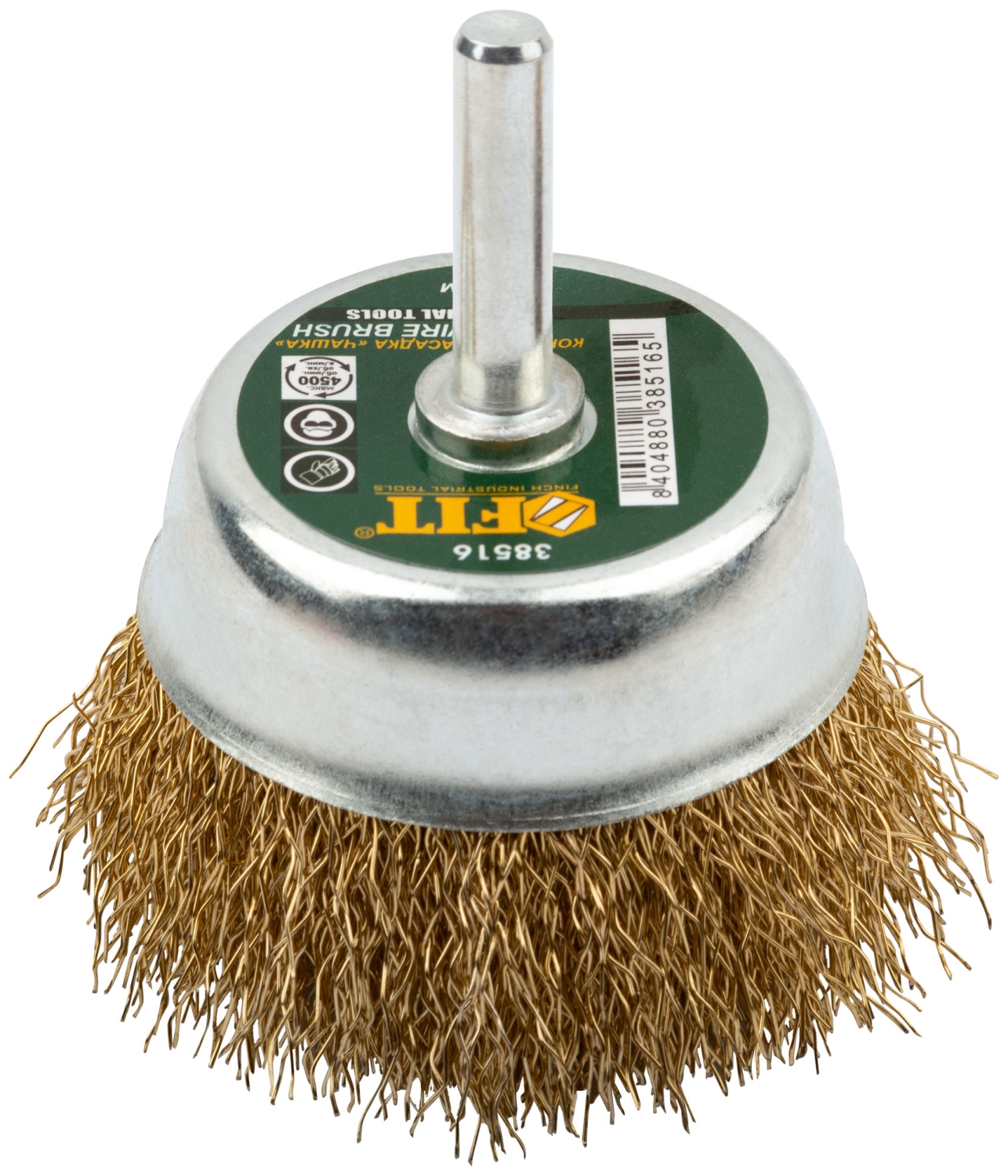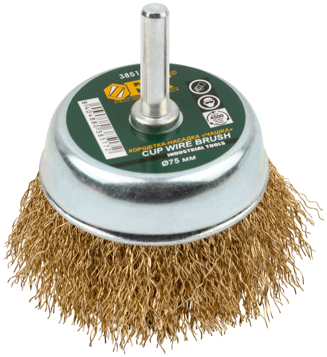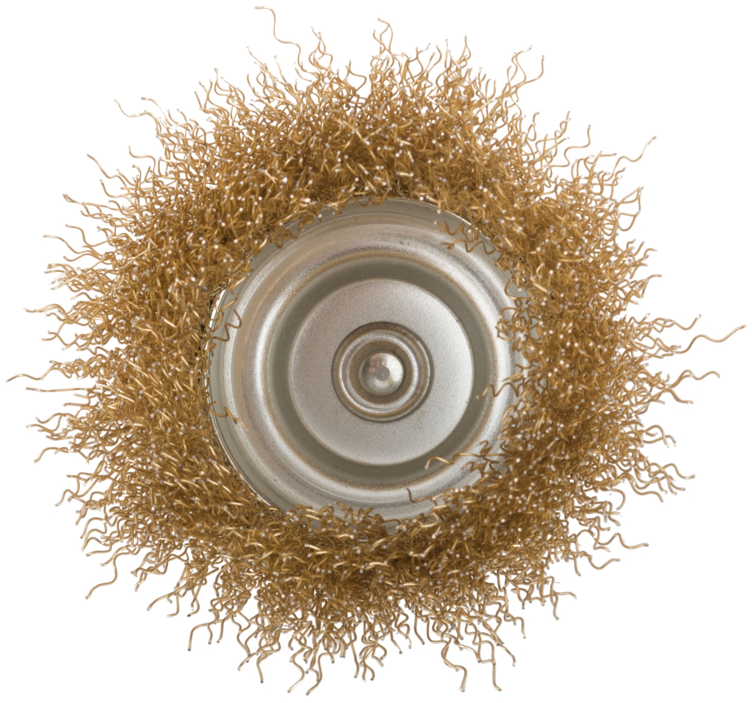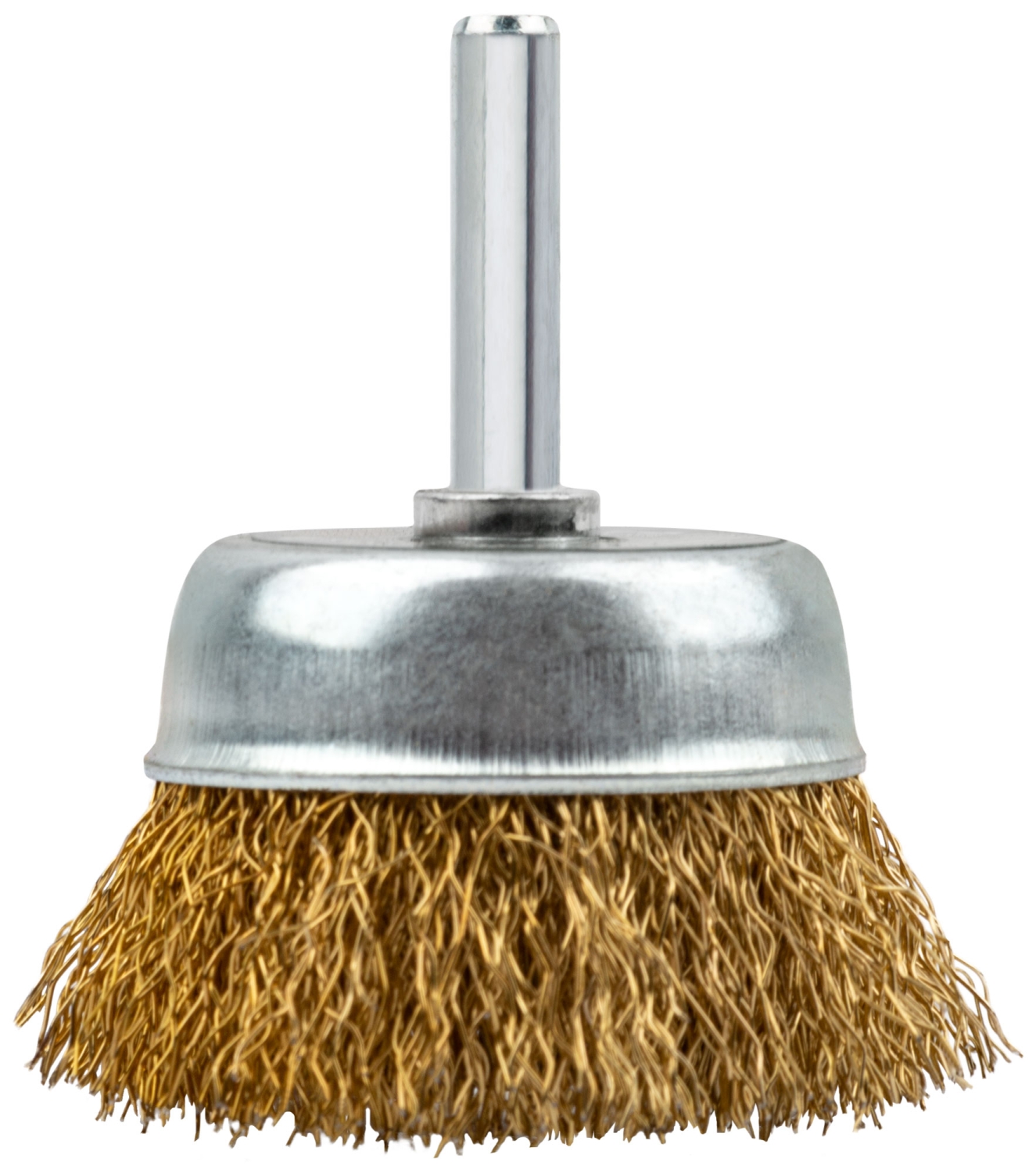 Корщетка-чашка, со штифтом, стальн.латунир.волнист.проволока