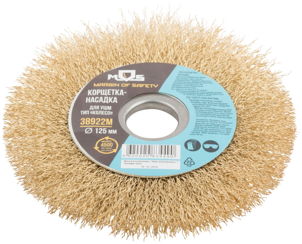 Корщетка-колесо, посадочн.д.22,2мм, стальн.латунир.волнист. проволока 125 мм