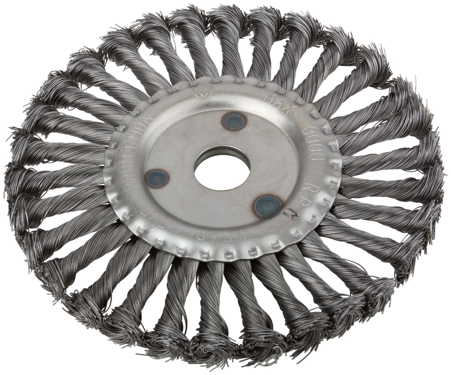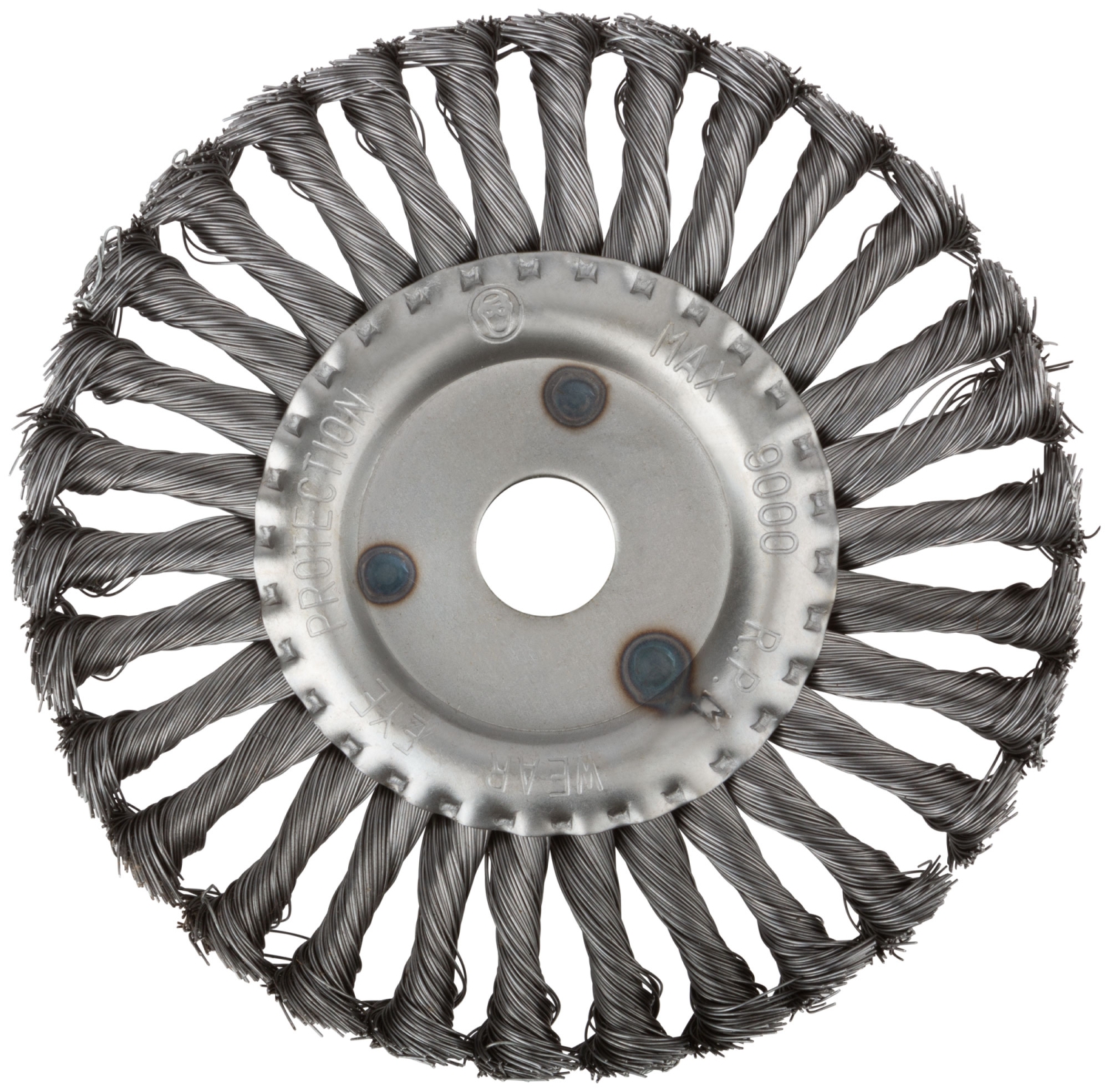 Тип «колесо». Для УШМ. Витая стальная проволока. Посадочный диаметр – 22,2 мм. Упаковка: картонная коробка.