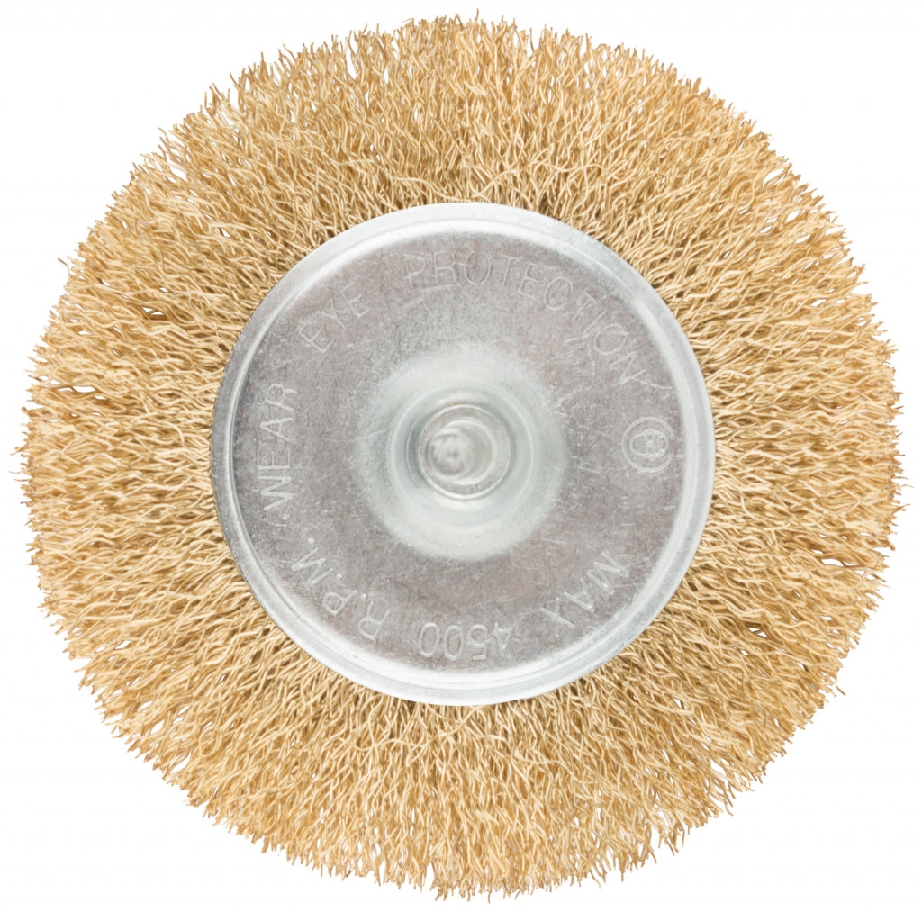 Корщетка-колесо, со штифтом, стальн.латунир.волнист.проволока 100 мм.